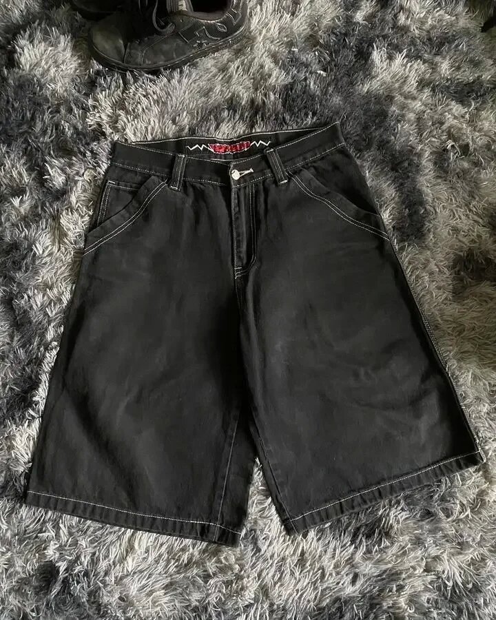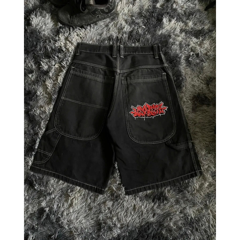 Уличные шорты Y2K для трансграничной электронной коммерции, свободные джинсовые шорты в стиле ретро в стиле хип-хоп с карманами и буквами, мужские шорты с высокой талией