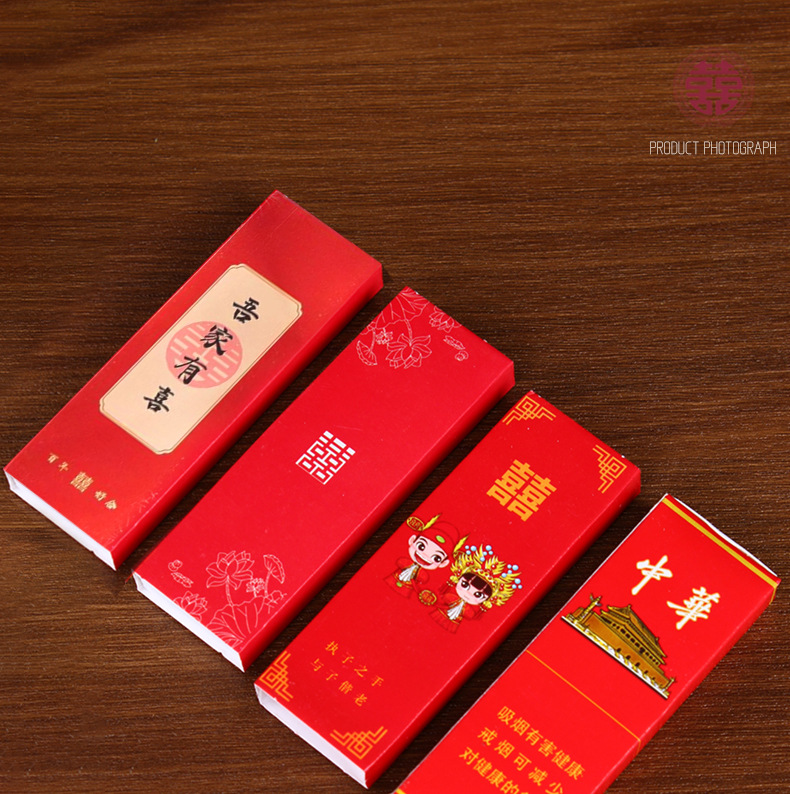 Свадебная коробка для сигарет с двумя сигаретами и спичками, свадебная коробка для сигарет, свадебная коробка для конфет, красная коробка для спичек двойного счастья