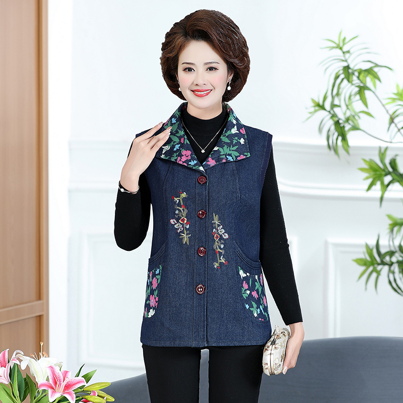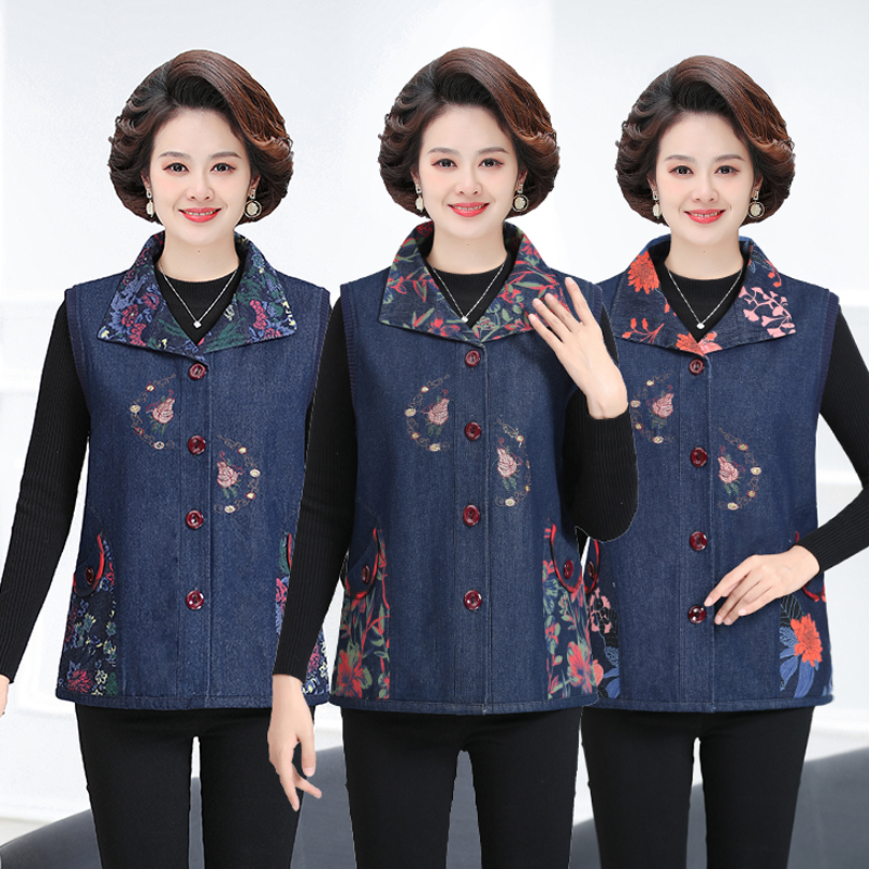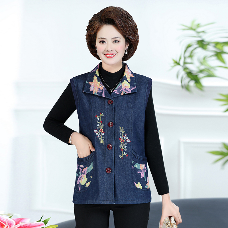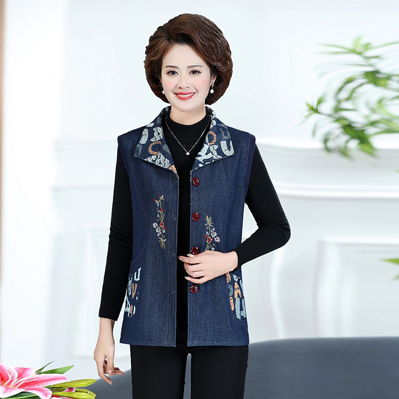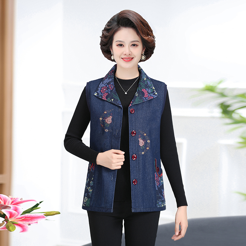 Женская весенне-осенняя одежда для мам среднего и пожилого возраста, тонкий джинсовый жилет, жилет для пожилых людей, жилет большого размера, верхняя одежда, жилет для бабушки