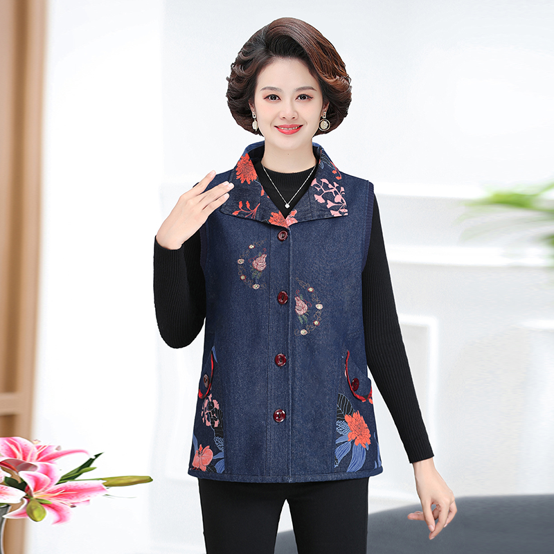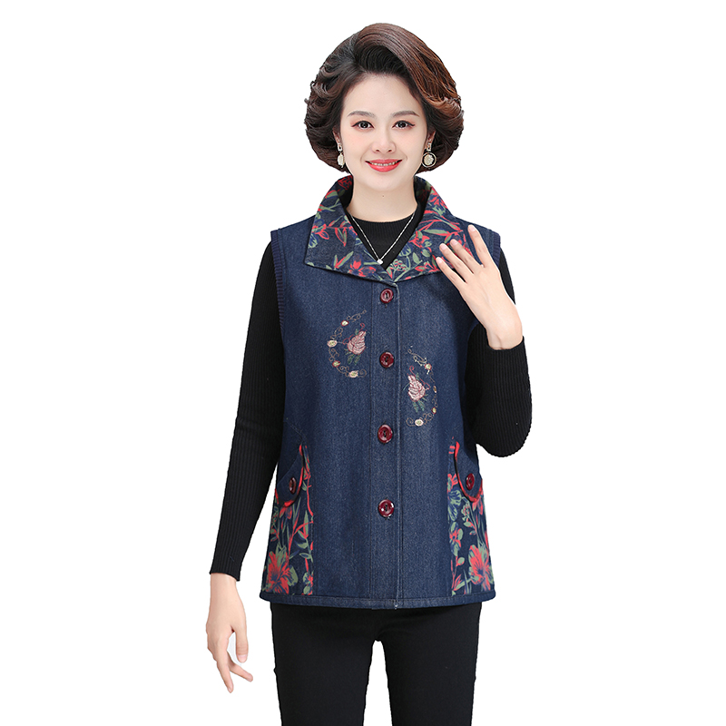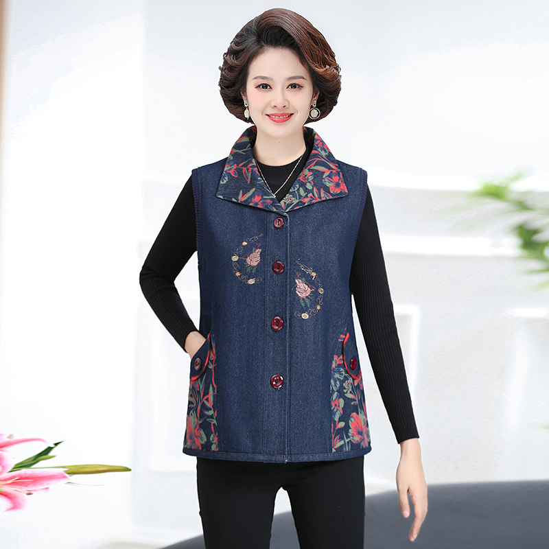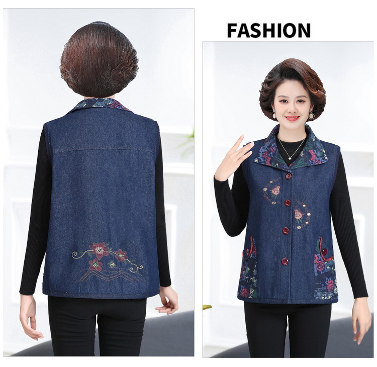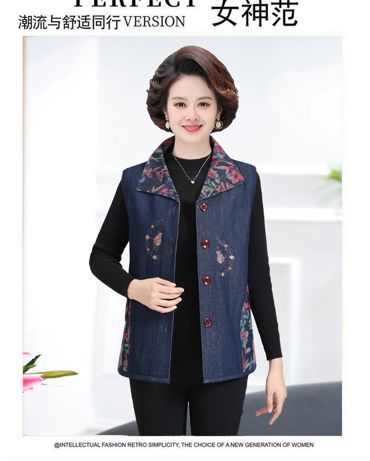 Женская весенне-осенняя одежда для мам среднего и пожилого возраста, тонкий джинсовый жилет, жилет для пожилых людей, жилет большого размера, верхняя одежда, жилет для бабушки