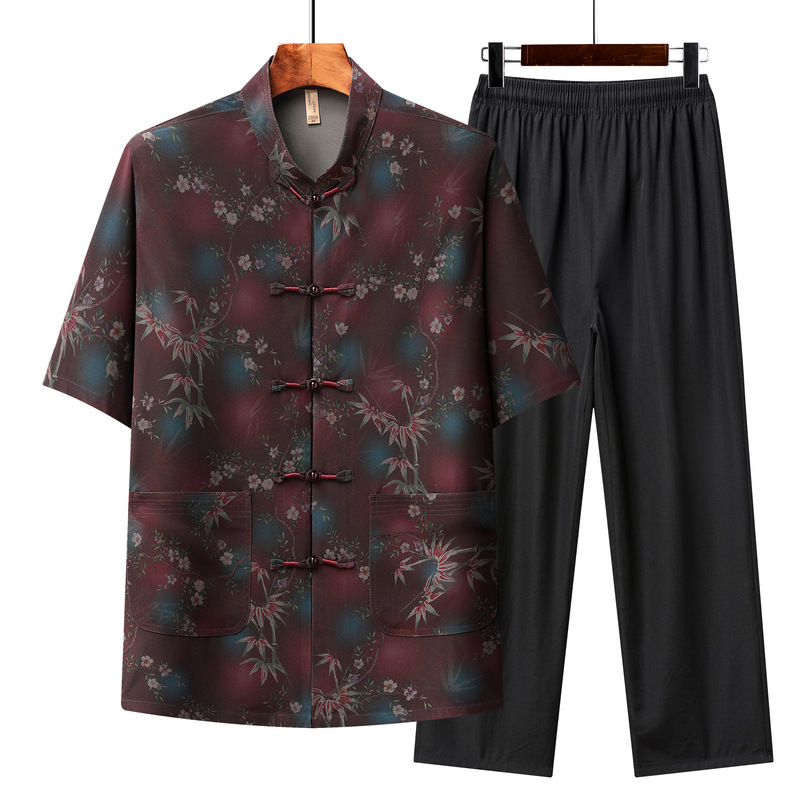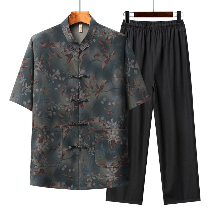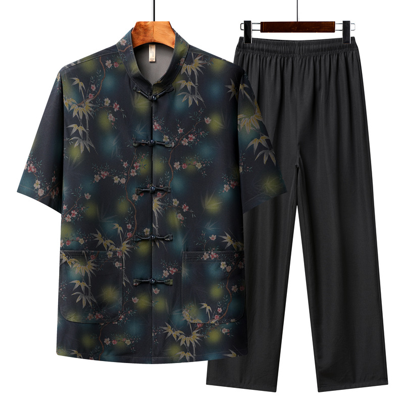 Мужской летний повседневный костюм Тан в китайском стиле для мужчин среднего и пожилого возраста с короткими рукавами, свободный летний китайский тонкий костюм для дедушки