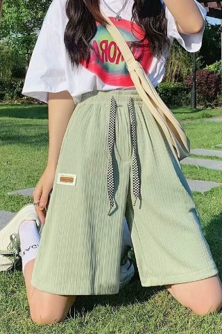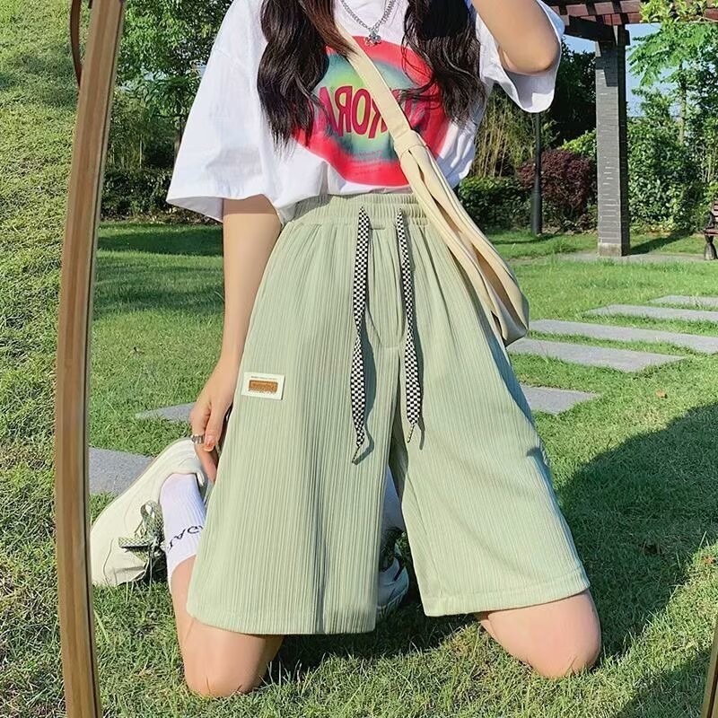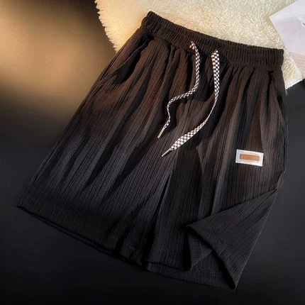 Мужские шорты из ледяного шелка на лето 2026: модные, однотонные, универсальные спортивные брюки до колена в гонконгском стиле, свободный крой
