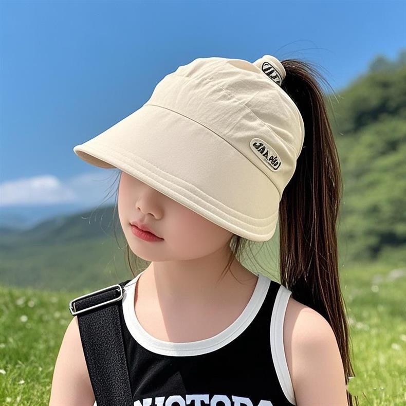 Летняя УФ-солнцезащитная шляпа для девочек, быстросохнущая детская шапка, детская кепка с тонким пустым верхом, солнцезащитная шляпа
