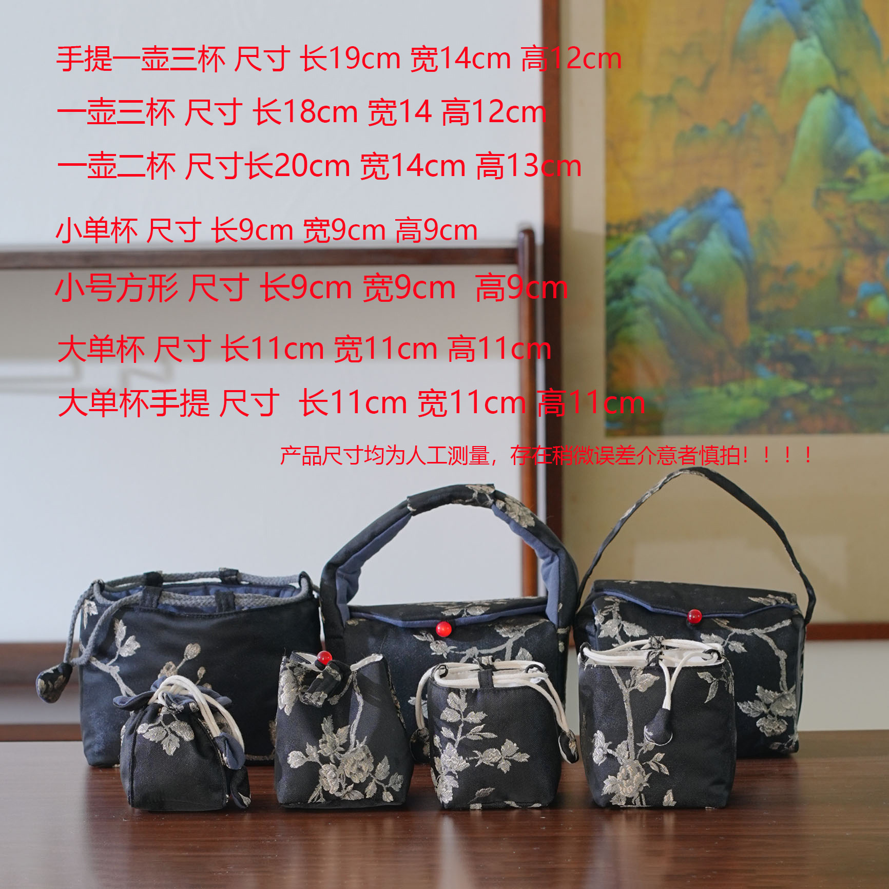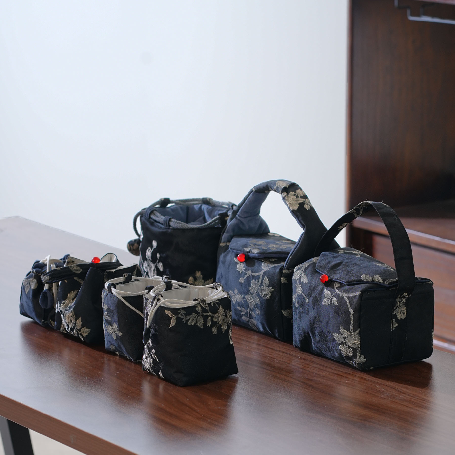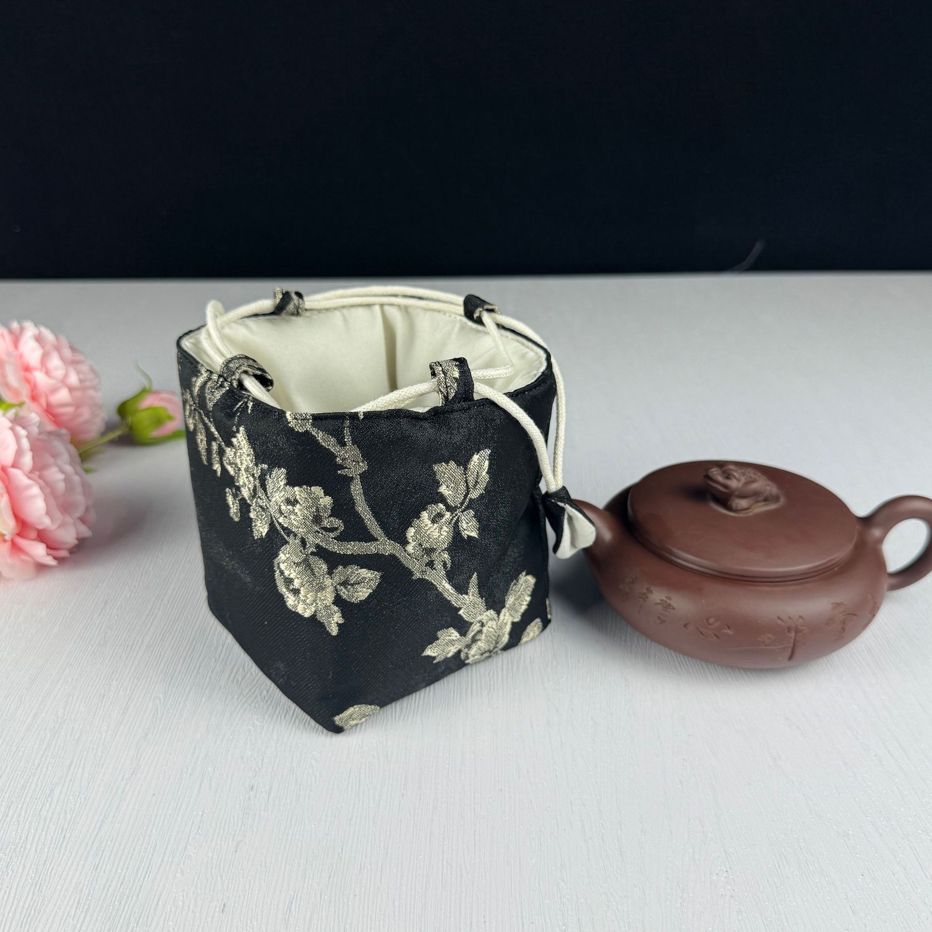 Бай Мэй Мо несет кастрюлю и три чашки.; Бай Мэй Мо приносит кастрюлю и три чашки.; Бай Мэй Мо приносит кастрюлю и две чашки.; Маленькая сумка на одну чашку с чернилами белой сливы; Маленькая квадратная сумка для чашек Bai Mei Mo Ti; Большая сумка для одной чашки Bai Mei Mo Ti; Bai Mei Mo Ti Большая портативная сумка для чашек на одну чашку