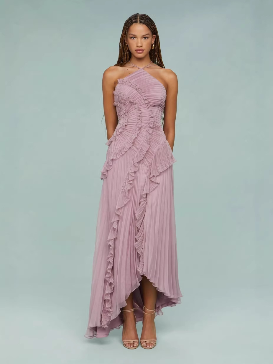 Европейская и американская женская одежда 2025 летняя женская мода новый секс-секс с открытой спиной с бахрокой темпераментное платье