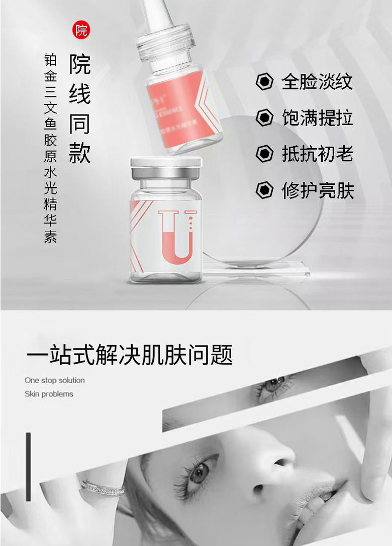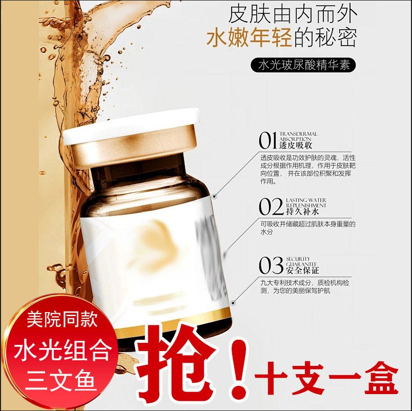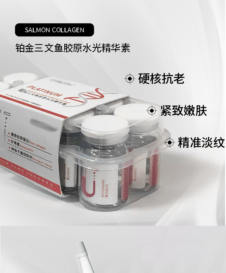 Увлажняющая эссенция Platinum Salmon Collagen (коробка из десяти штук); Укрепляющая увлажняющая эссенция Snake Venom Peptide Sanyin (коробка из десяти штук); Увлажняющая эссенция в маленькой коричневой бутылочке с карнозином (коробка из десяти штук); Увлажняющая эссенция с гиалуронатом натрия (коробка из десяти штук); Серия водяных фонарей, автономная модель OEM (филиал); Минимальный депозит OEM