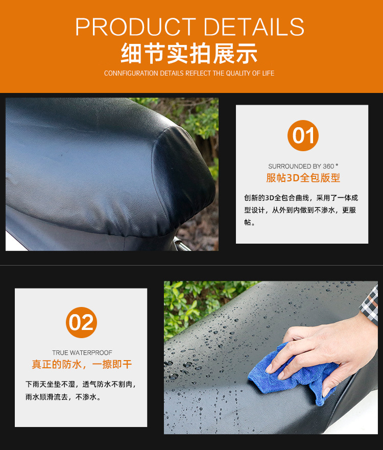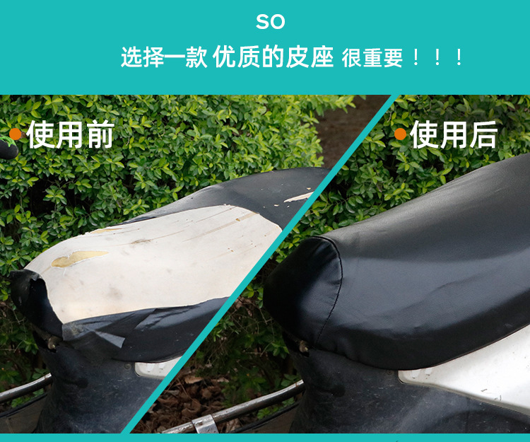 产品名称:摩托车坐垫套、电动车坐垫套、电瓶车坐垫套、踏板摩托车坐垫套、防水遮破皮革坐垫套、防水皮革遮破座套、皮革换新摩托车座套。