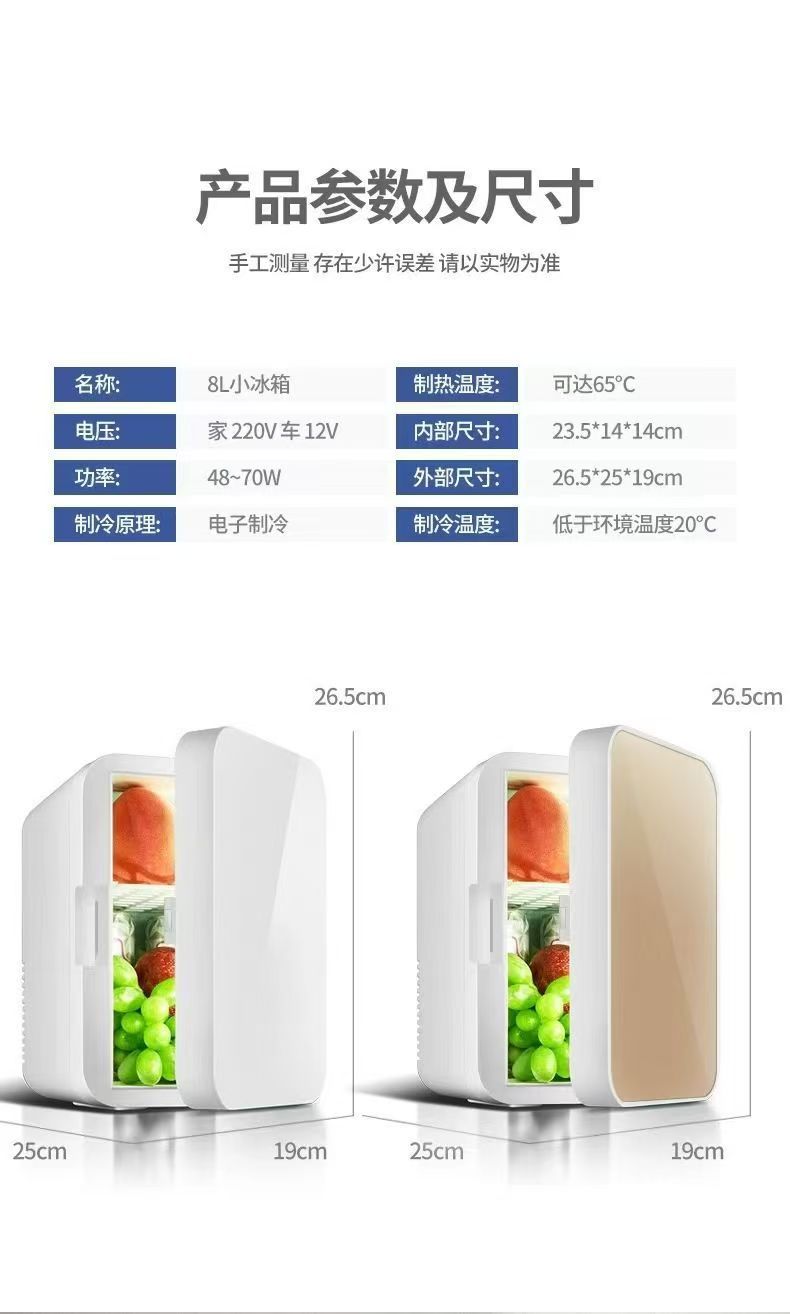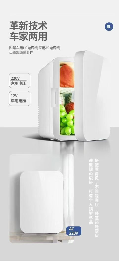 Автомобильный холодильник Xiaxin, 8 л, небольшой холодильник для общежития, арендованная комната, мини-холодильник для красоты, автомобильный домашний портативный холодильник двойного назначения
