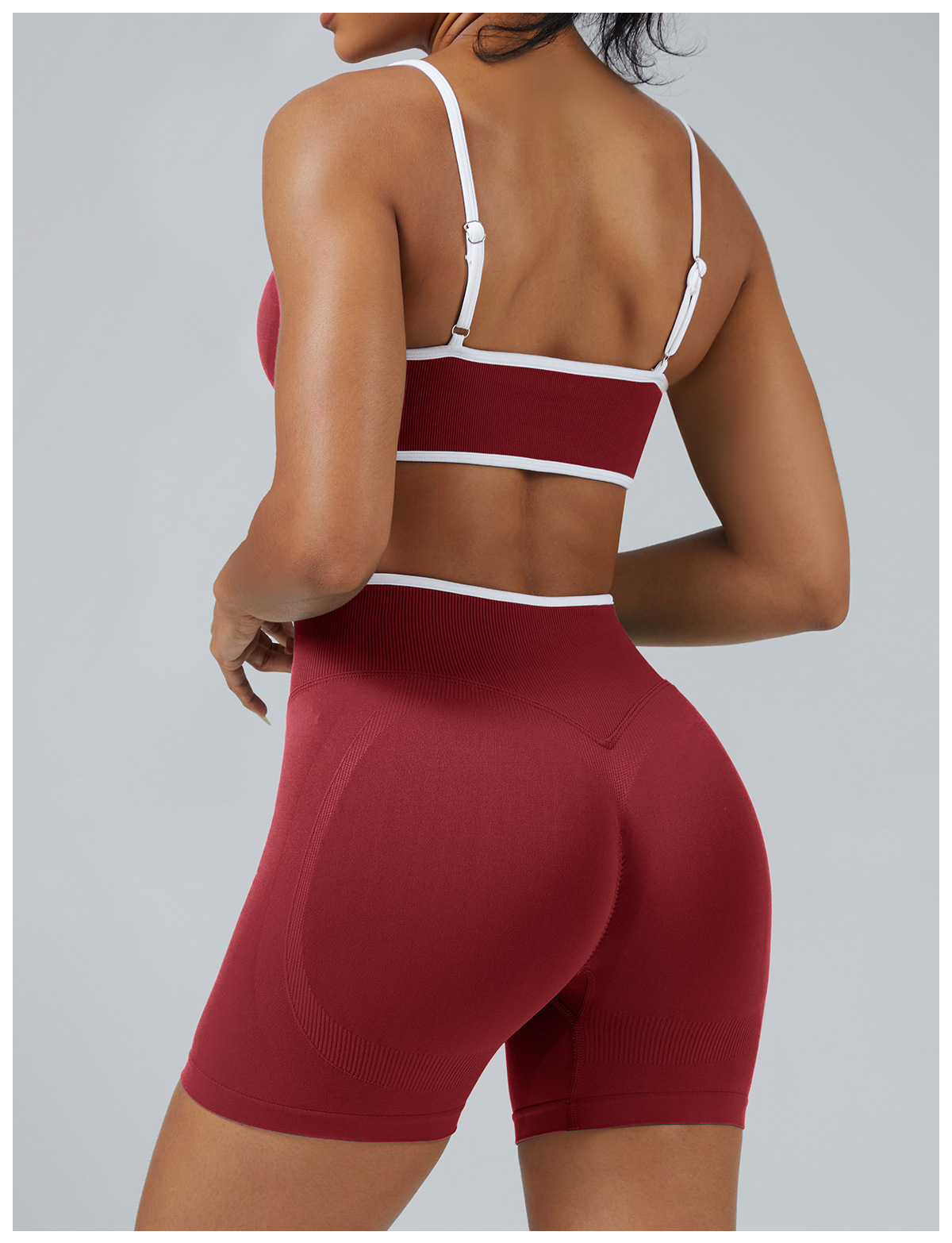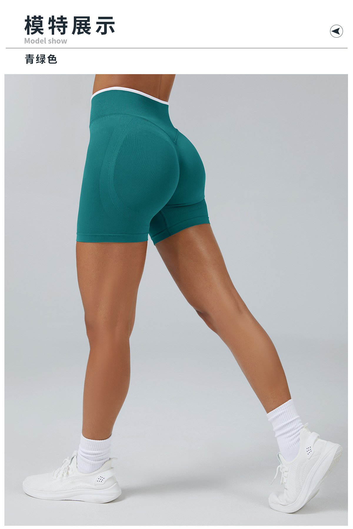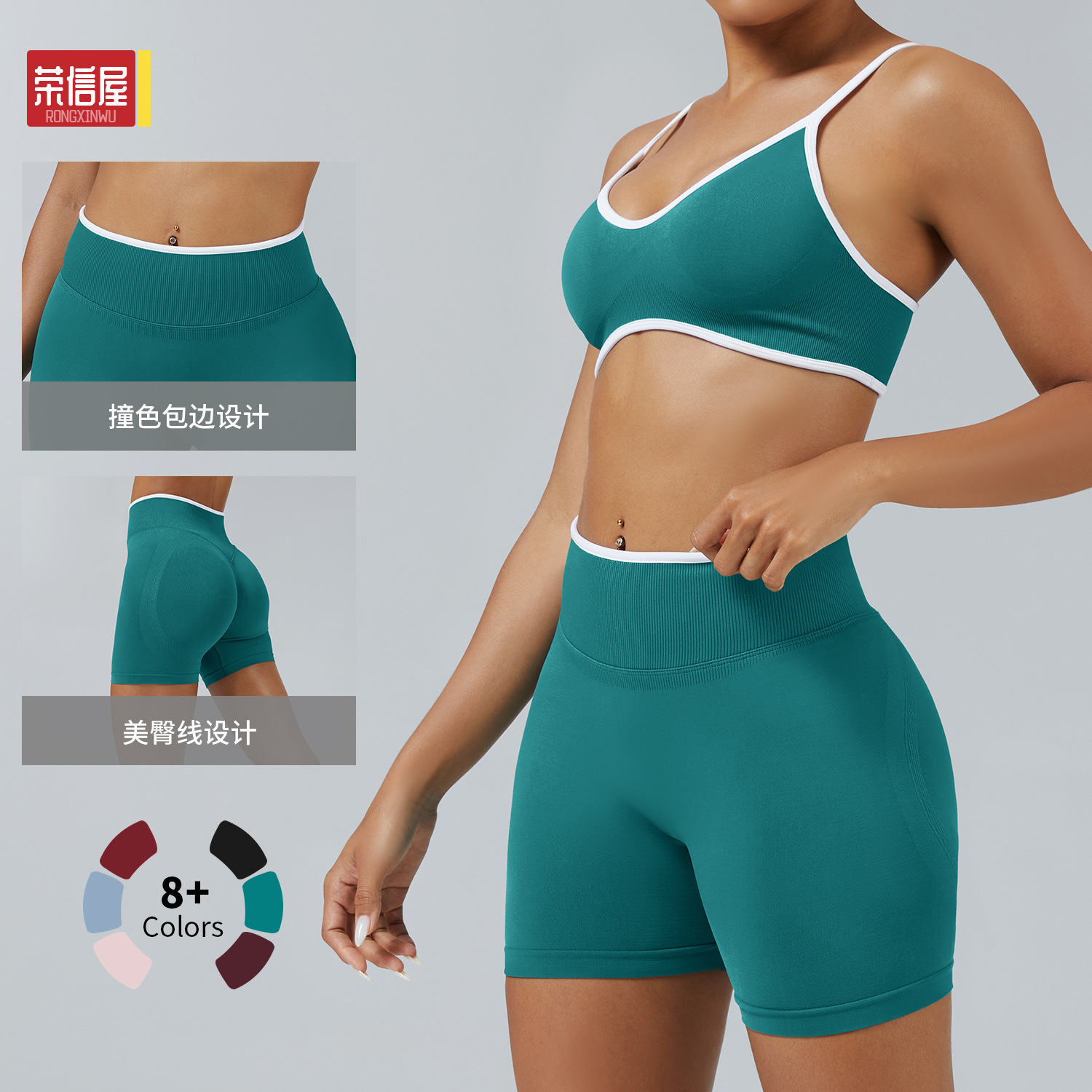 Трансграничные европейские и американские бесшовные узкие шорты для йоги с цветными блоками, персиковые спортивные шорты с подъемом бедер, спортивные штаны для бега, фитнеса для женщин