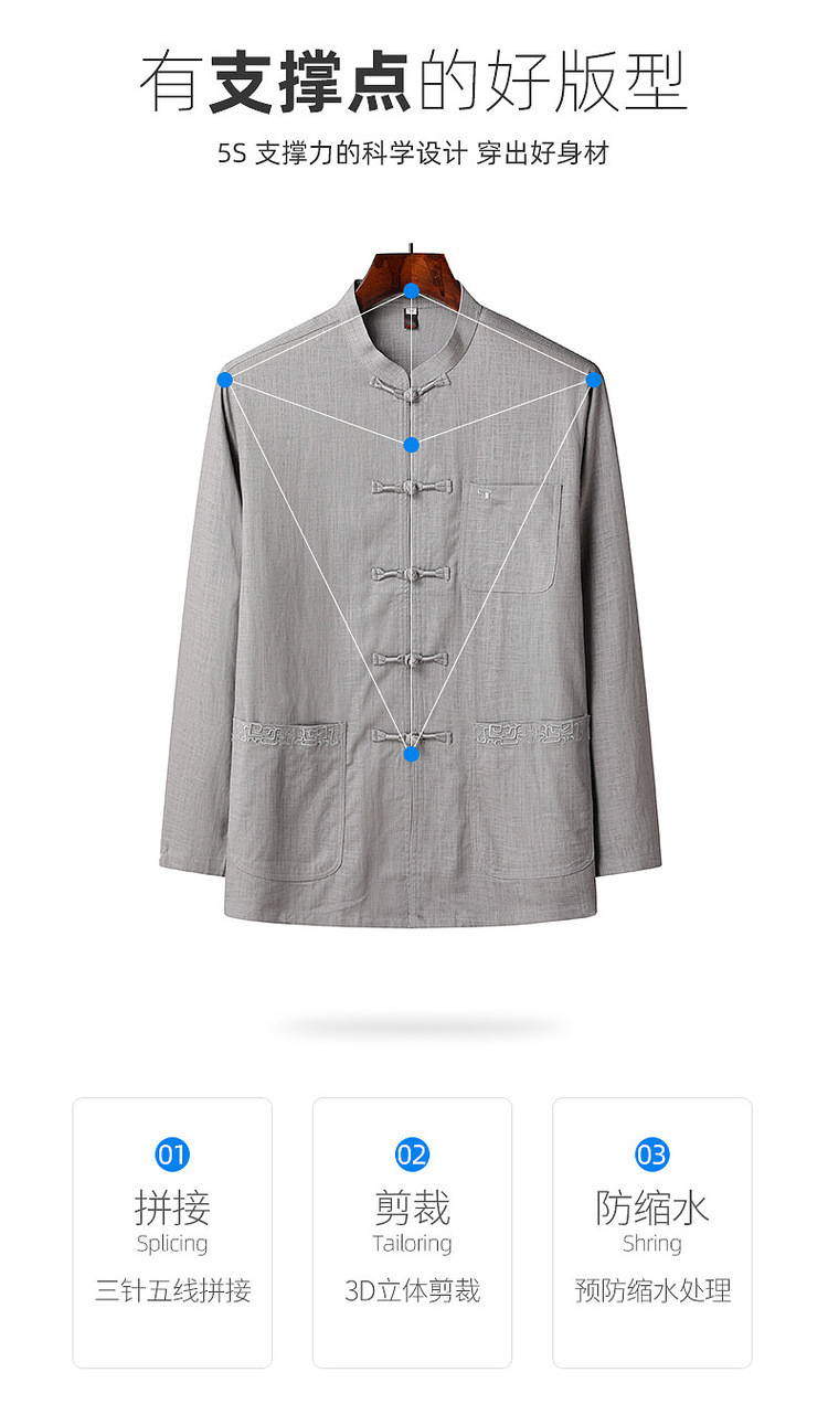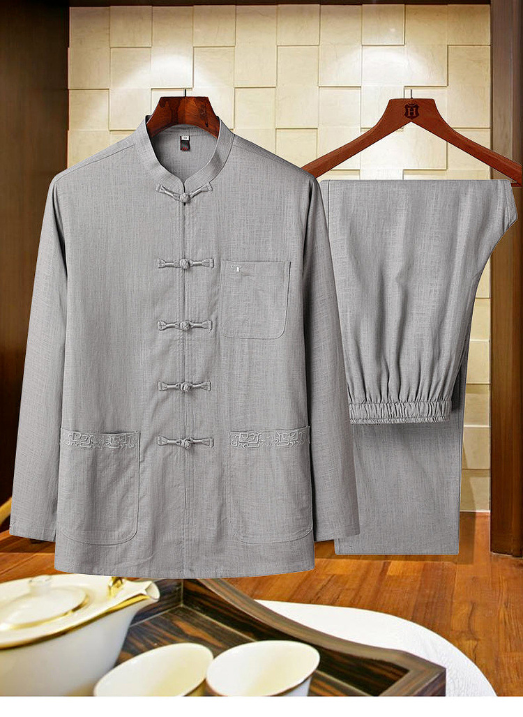 Костюм Тан Ханфу мужской новый китайский стиль Костюм Тан мужской китайский стиль рубашка для папы среднего и пожилого возраста Костюм Тан Ханфу мужской летний костюм
