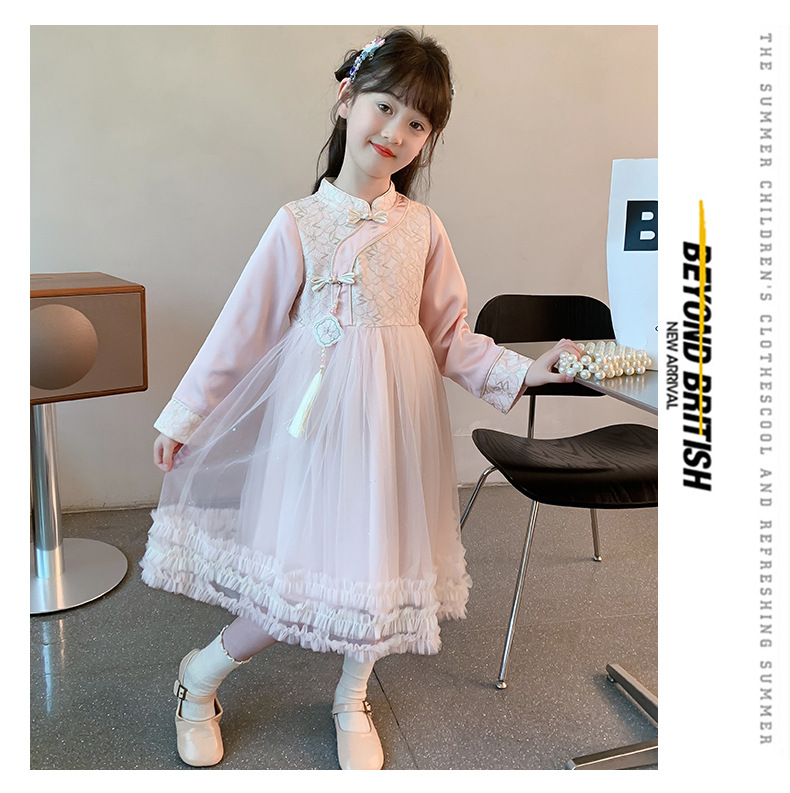 Весеннее платье династии Хань для девочек, новое платье 2025 года, детское платье интернет-знаменитостей в иностранном стиле, платье принцессы в китайском стиле, весенне-осеннее платье для девочек