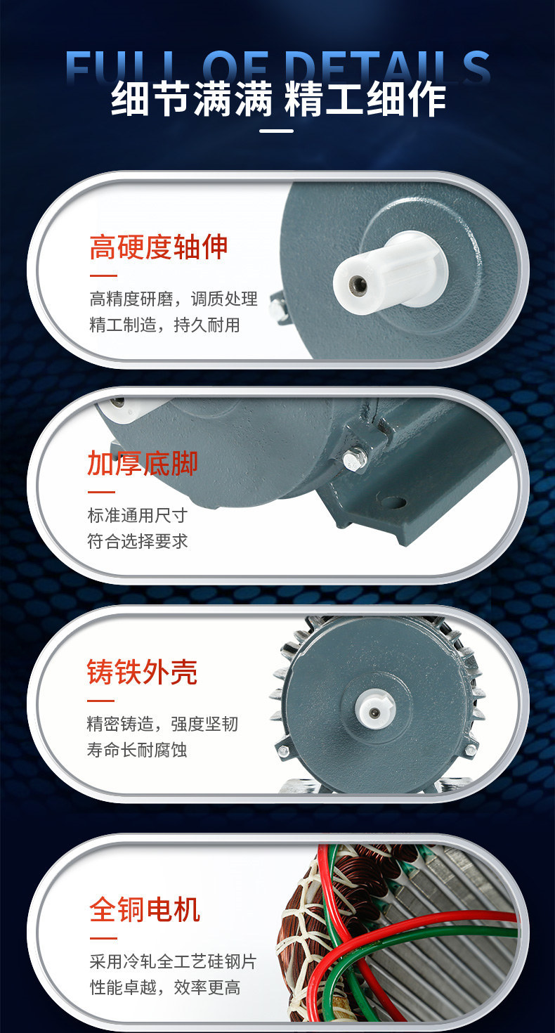 Прямые поставки от производителей из Фуцзяня: однофазные асинхронные двигатели оптом, железный корпус, полностью медный двигатель.