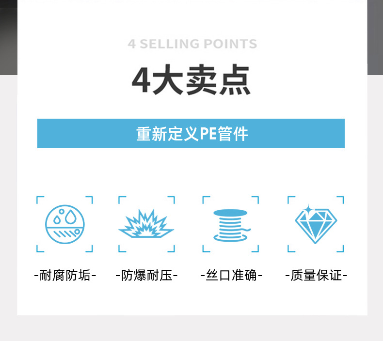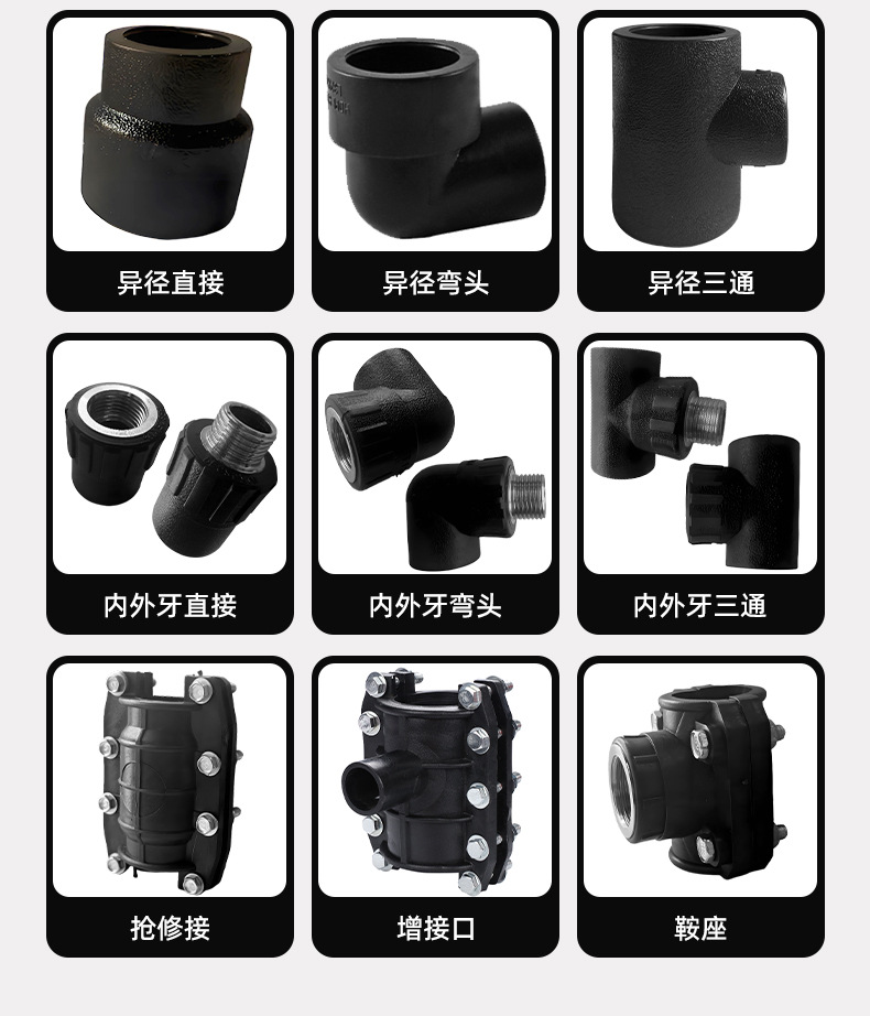 Фитинги для водопровода из нового материала PE, черные, с прямым внешним зубчатым соединением Qiyang*PE, горячего плавления.