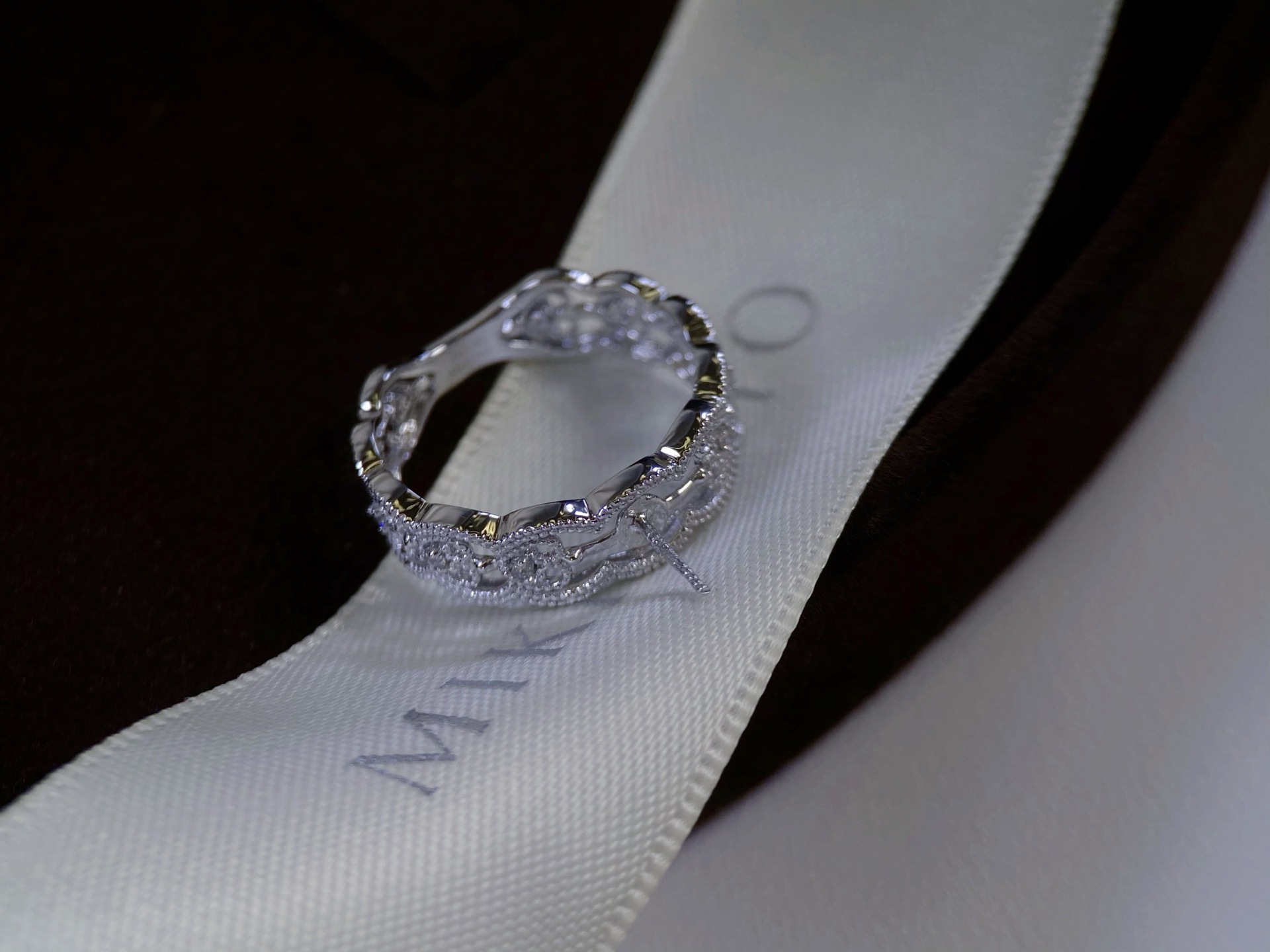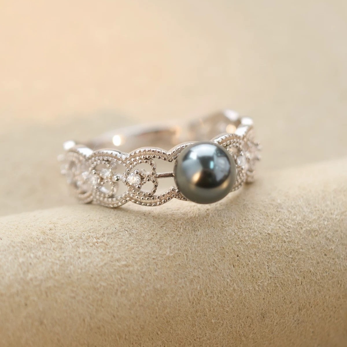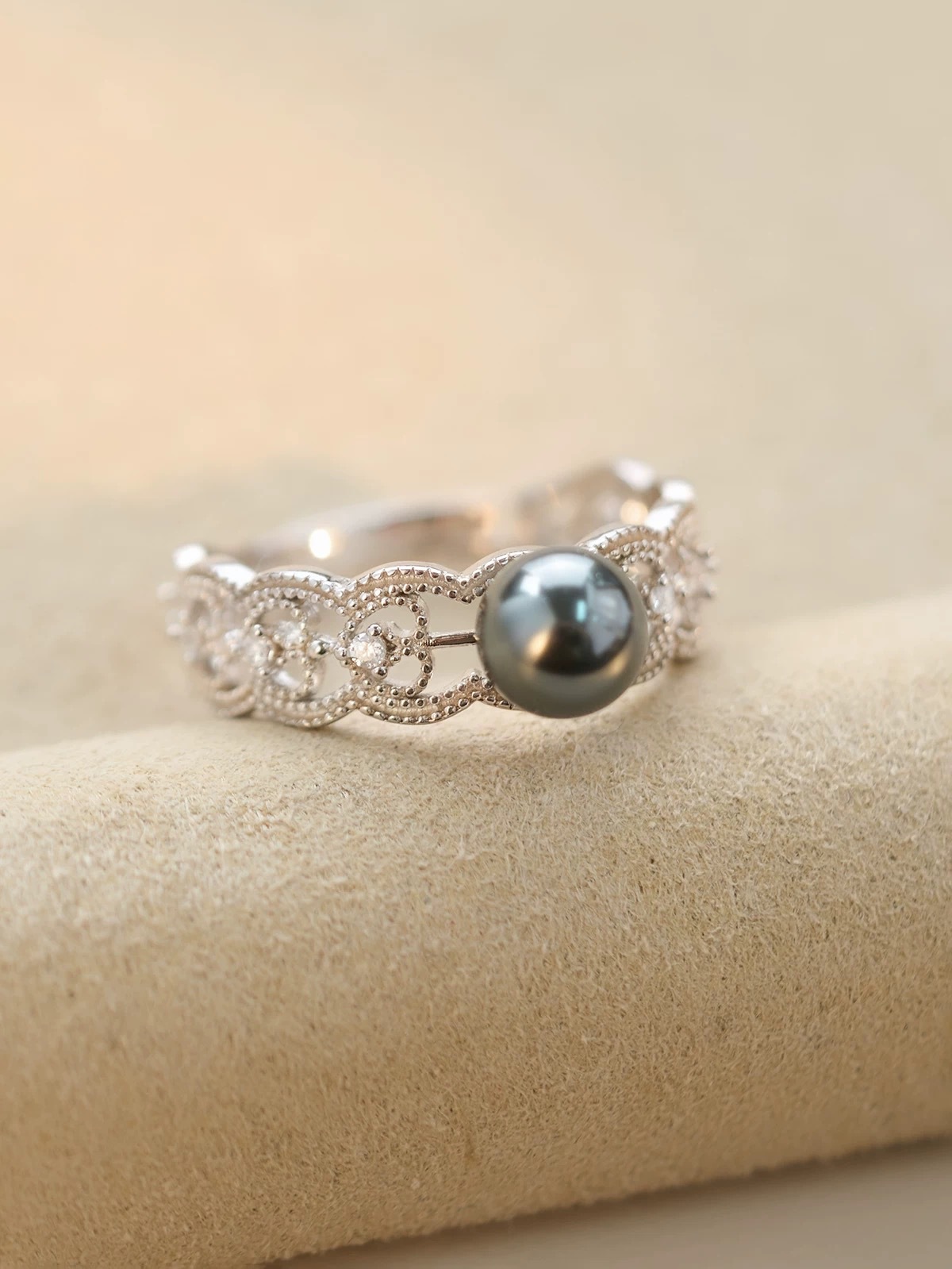 Аксессуары Platinum Pt900, кольцо с ретро-принтом, инкрустированное бриллиантами, с изображением 0,1 карата, бусины 9–10 мм в комплект не входят.
