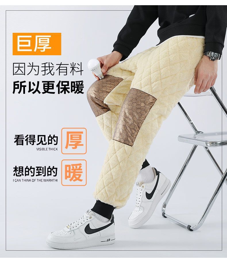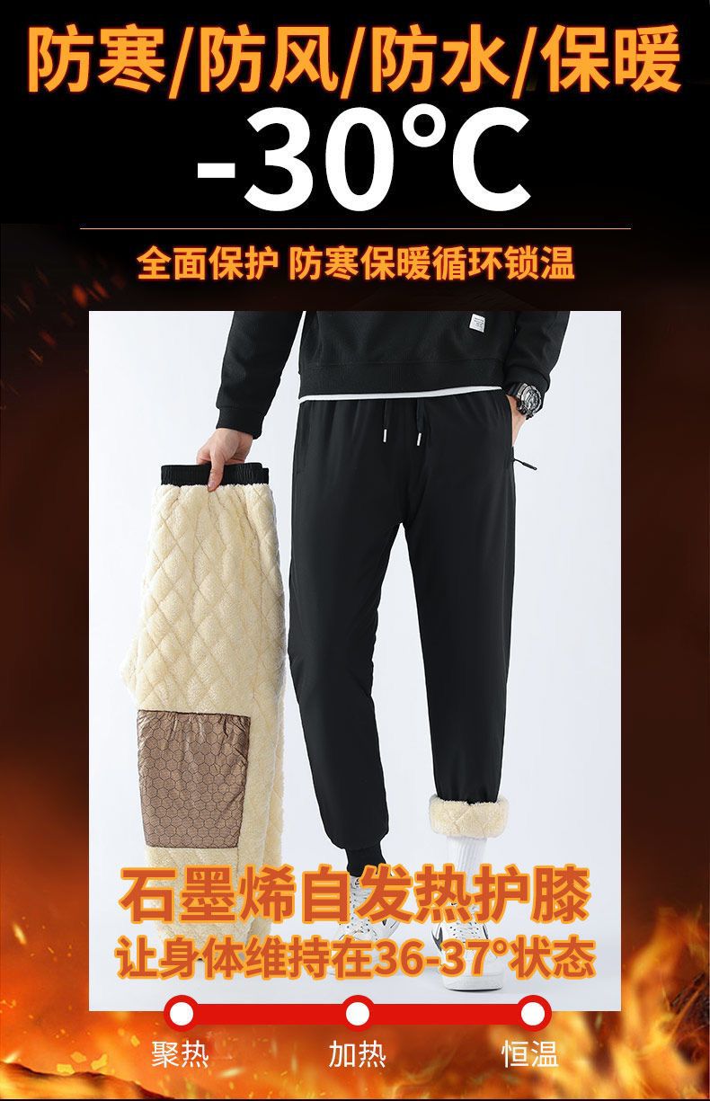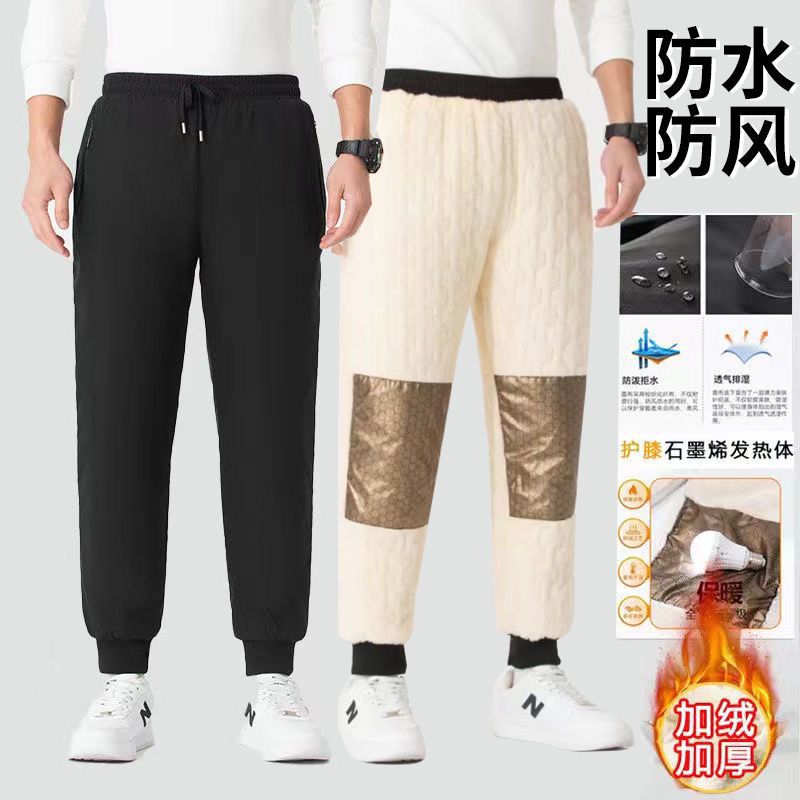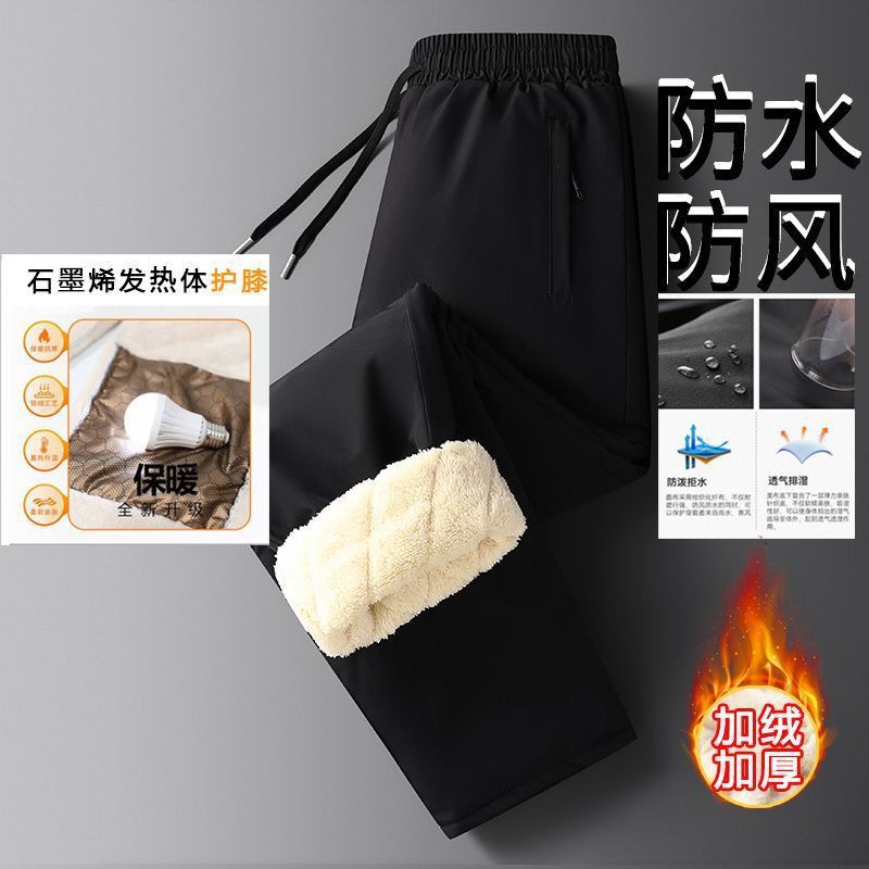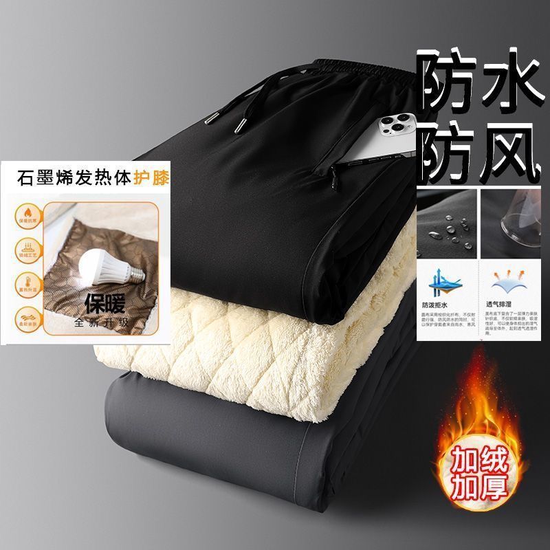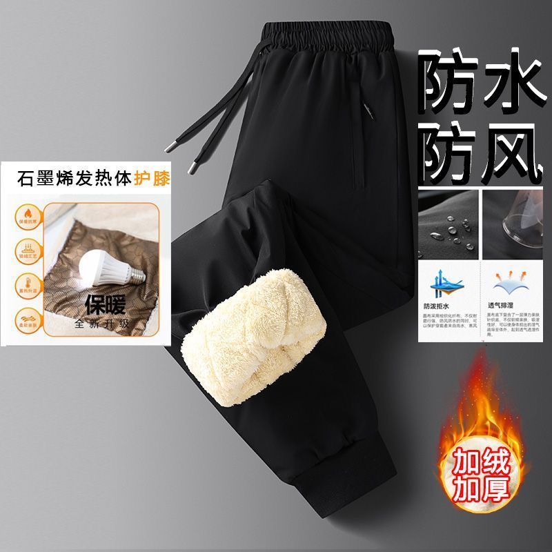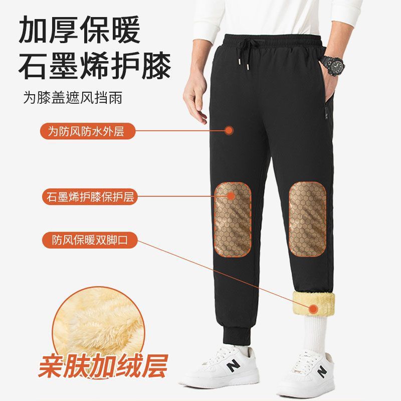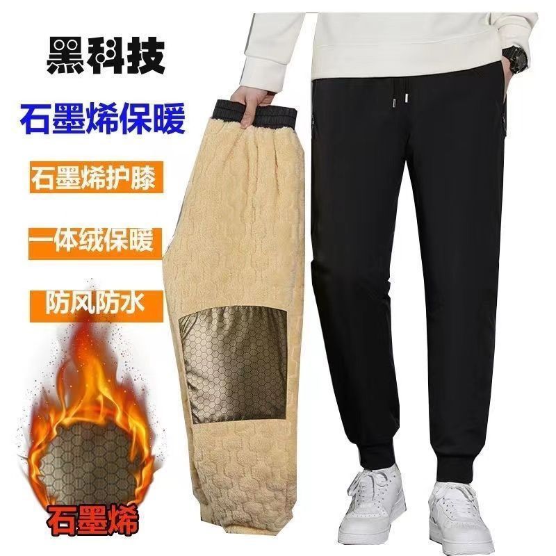 Мужские брюки на флисовой подкладке из графена, новый осенне-зимний стиль, на флисовой подкладке из ягненка, утолщенные длинные брюки, модные свободные спортивные штаны, универсальные.