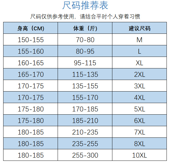 L; XL; 2XL; 3XL; 4XL; 5XL; 6XL; 7XL