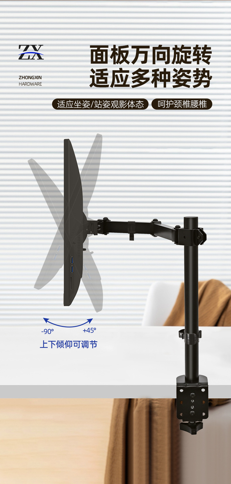 Однорычажная вращающаяся подставка для монитора
