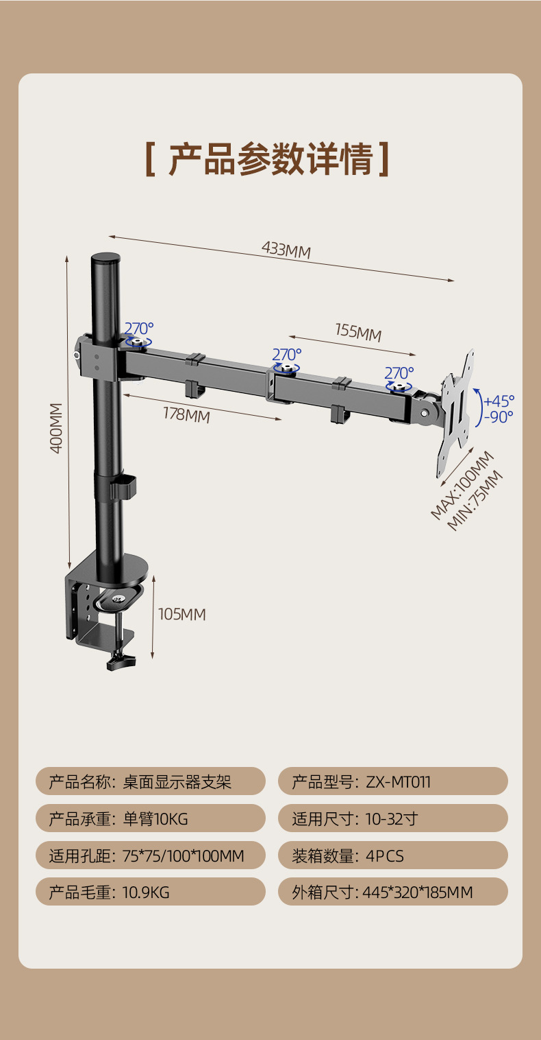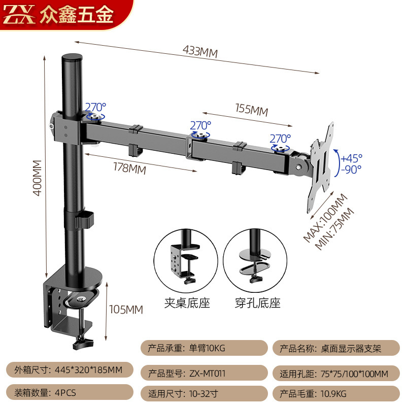 Подставка для трансграничного компьютерного монитора от производителя, механическая подставка для телевизора с одним рычагом, вращающаяся подставка для настольного монитора