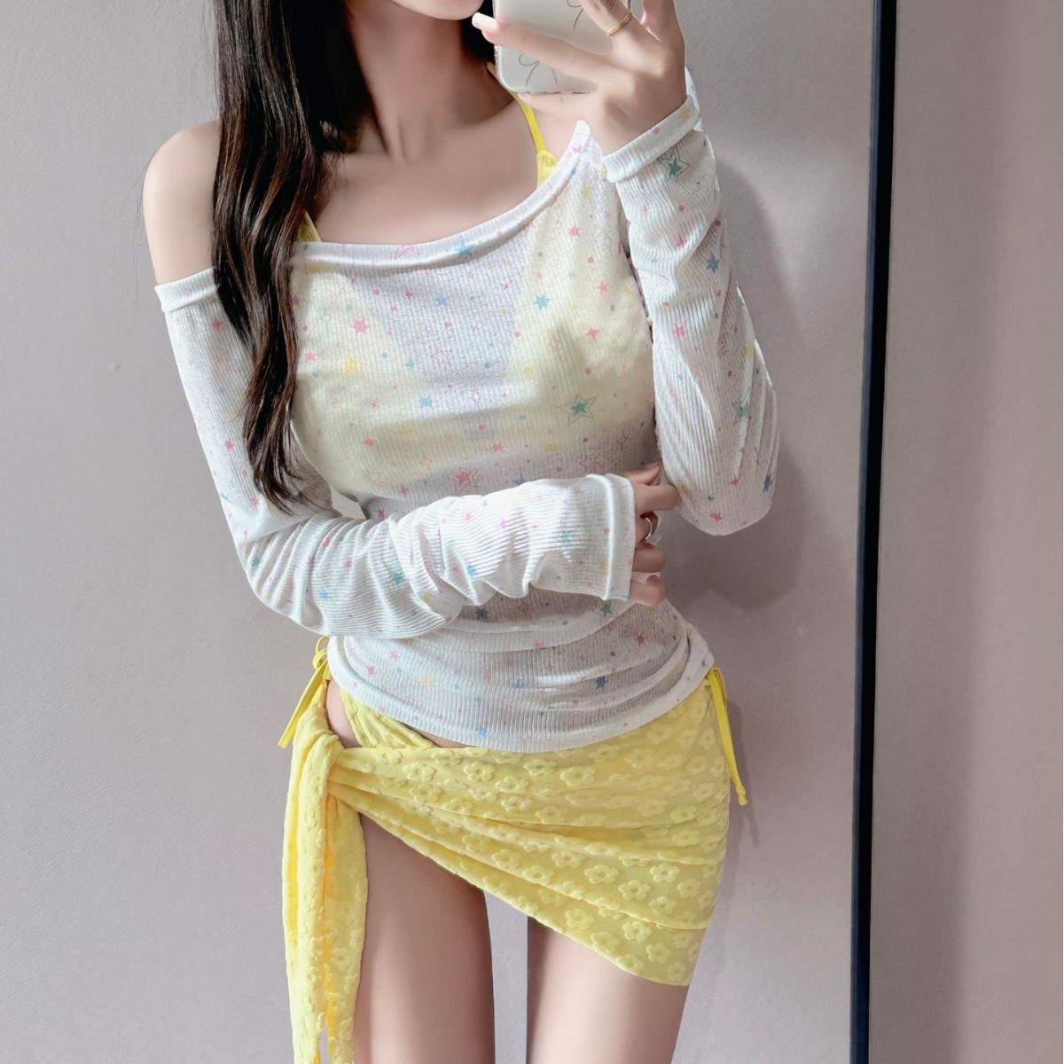 Купальник для женщин, элитный комплект бикини из четырех предметов, с длинными рукавами для защиты от солнца, пляжный купальник с принтом звезд оптом