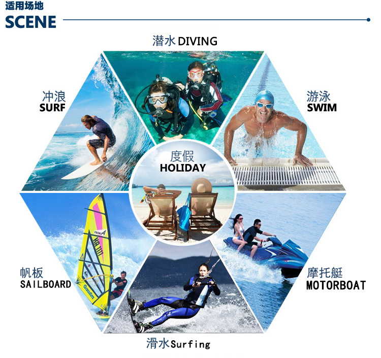 4.水上运动用品系列:游泳手套,潜水手套,潜水衣,冲浪衣、冲浪板袋等。