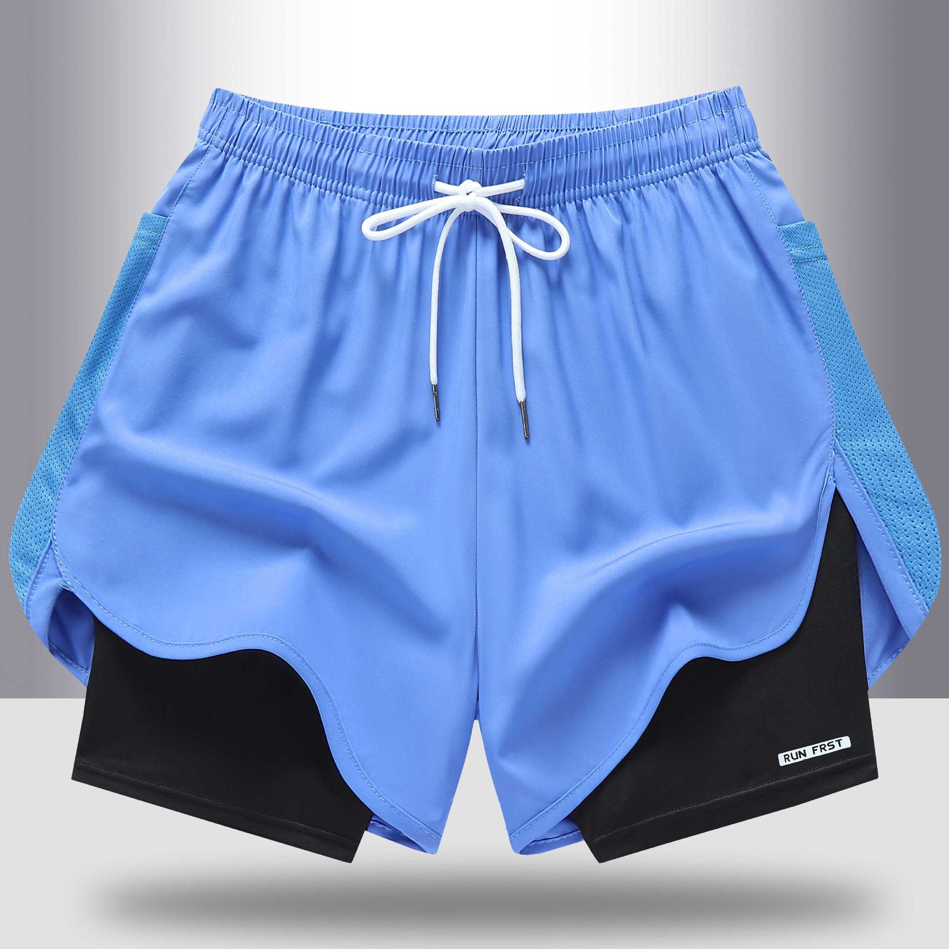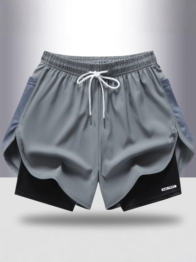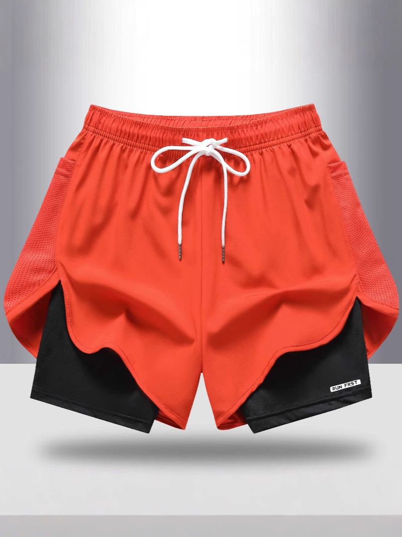 【Европейский размер】Летние спортивные брюки-двойка (фальш-двойка) для мужчин и женщин, быстросохнущие брюки для бега на открытом воздухе, дышащие, простые и повседневные для мужчин.