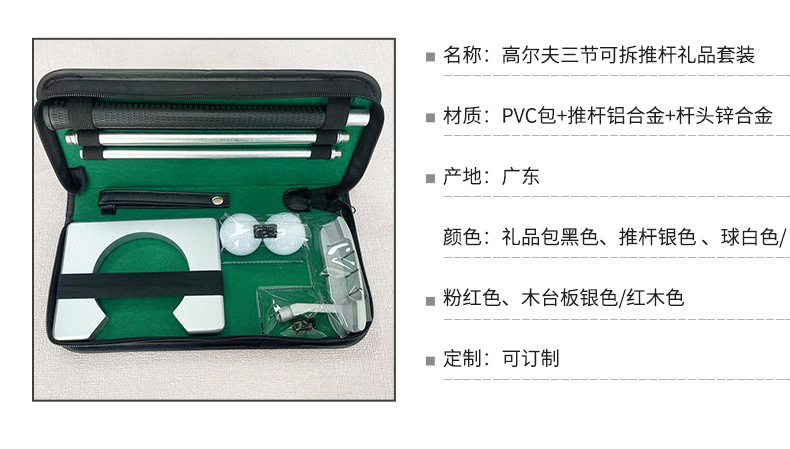 Трехсекционный съемный подарочный набор для гольфа, головка клюшки из цинкового сплава поддерживает съемные аксессуары, богатая сборка и простая сборка.