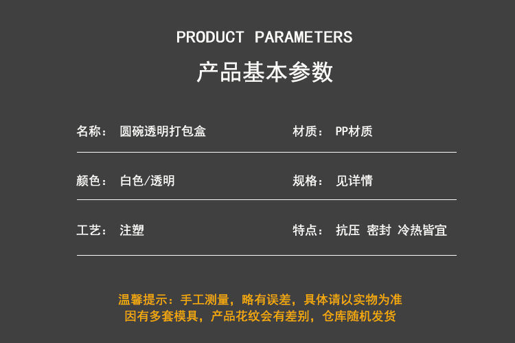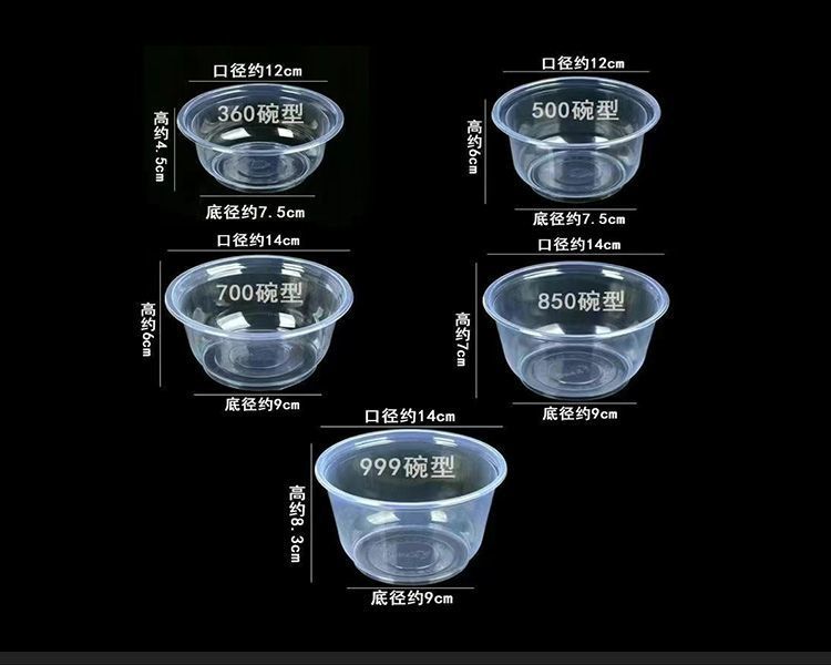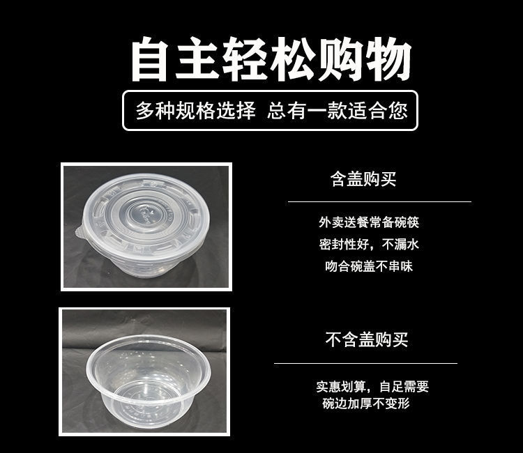 Одноразовая посуда, пластиковая миска, упаковка, утолщенная маленькая коробка для еды на вынос, коробка для фаст-фуда с крышкой, квадратная круглая суповая миска, оптовая продажа