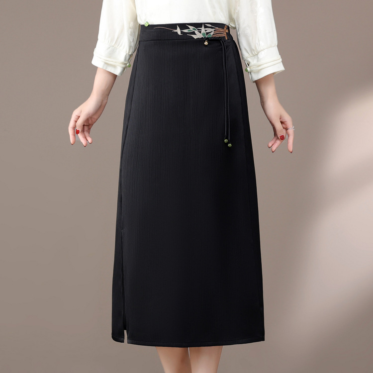 Женская одежда для женщин среднего и старшего возраста, для мам, 2025, новая юбка, новый китайский стиль, летняя юбка-карандаш, летняя юбка средней длины