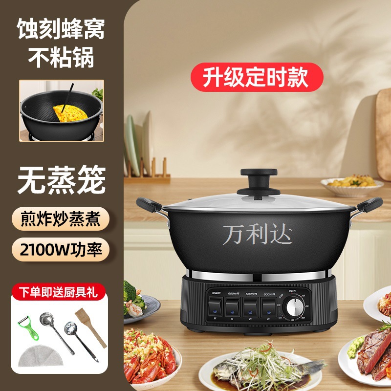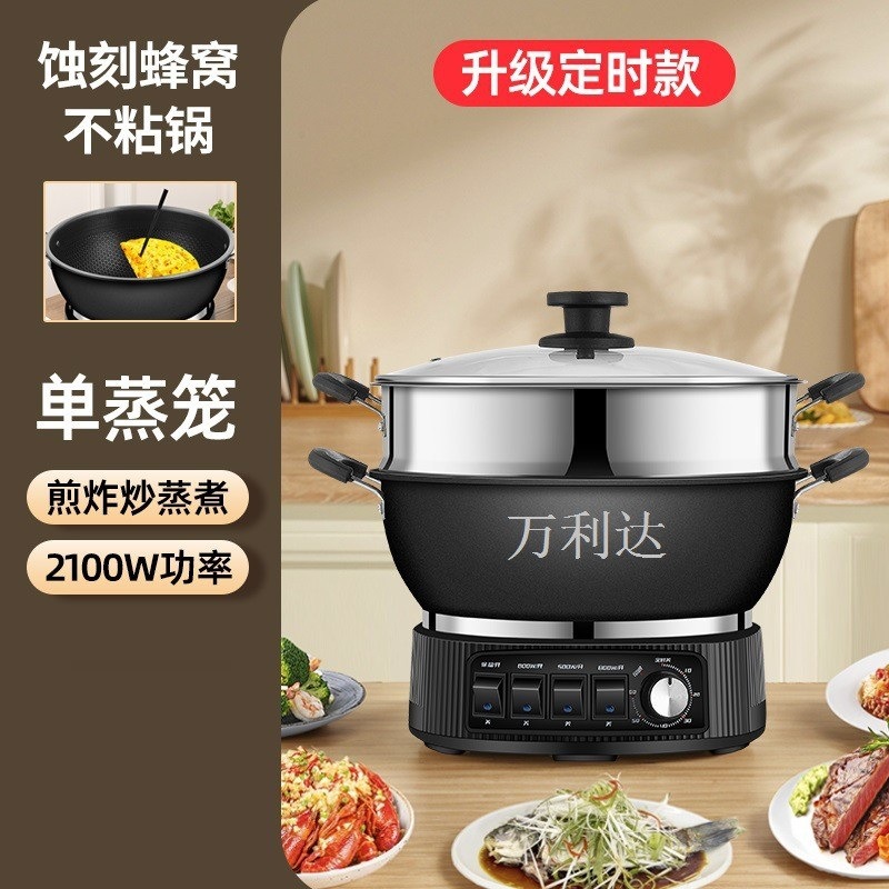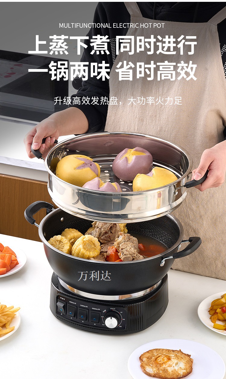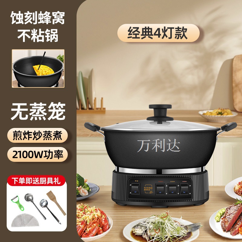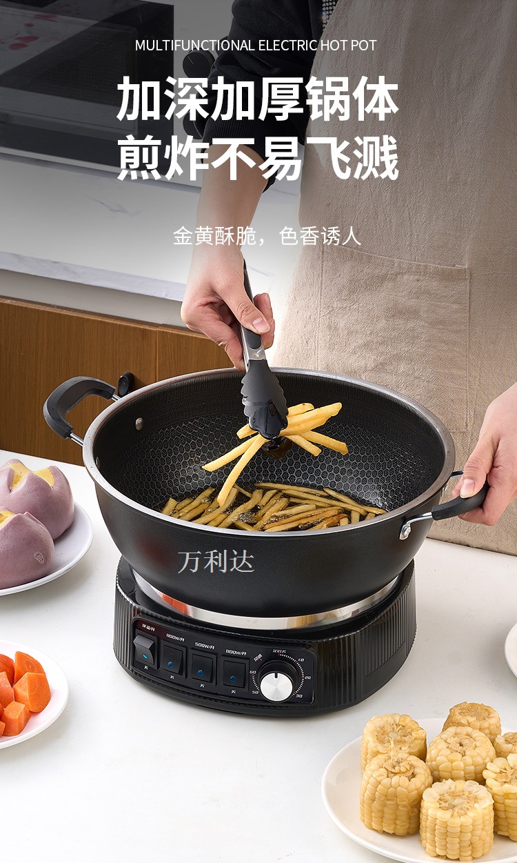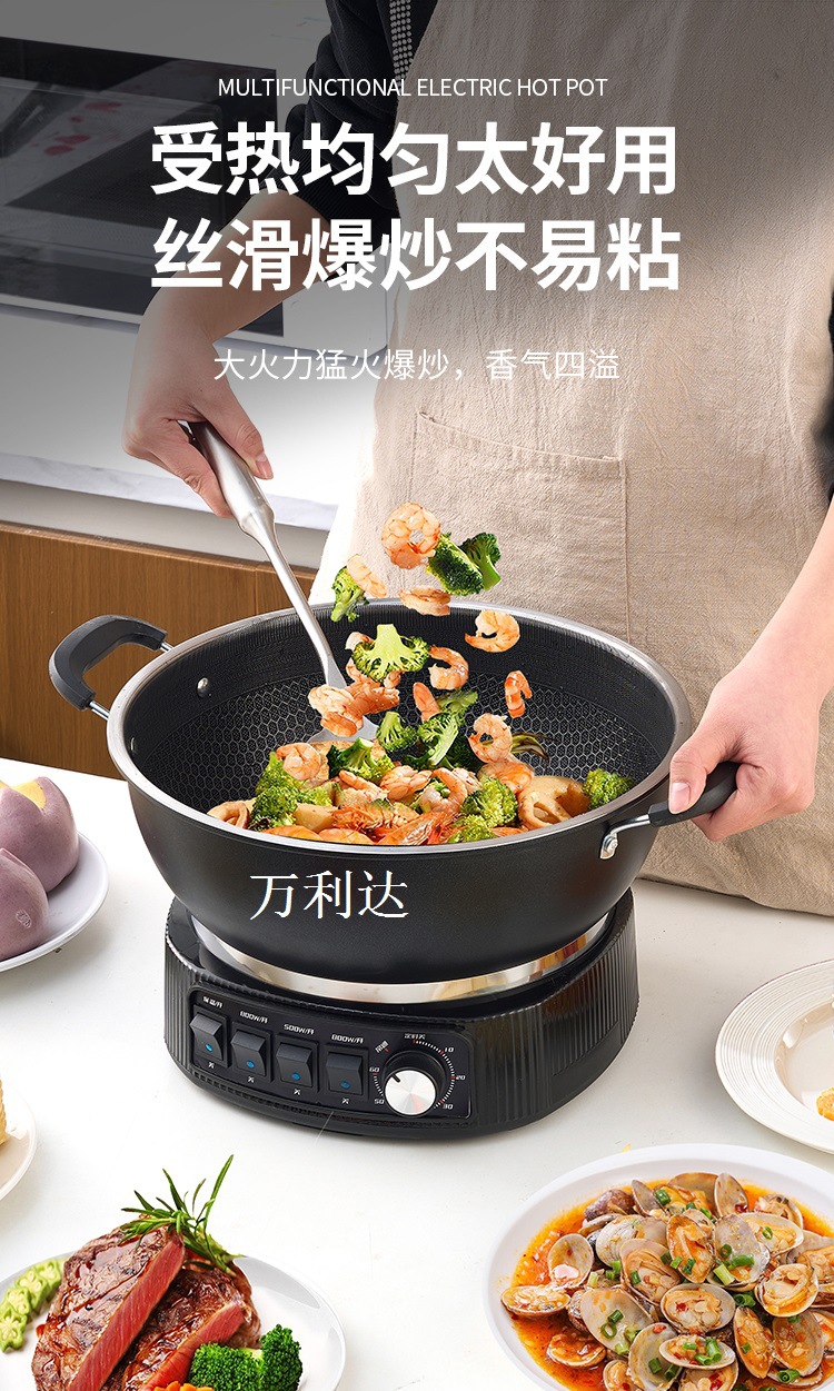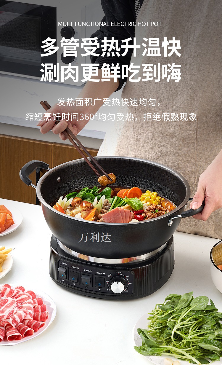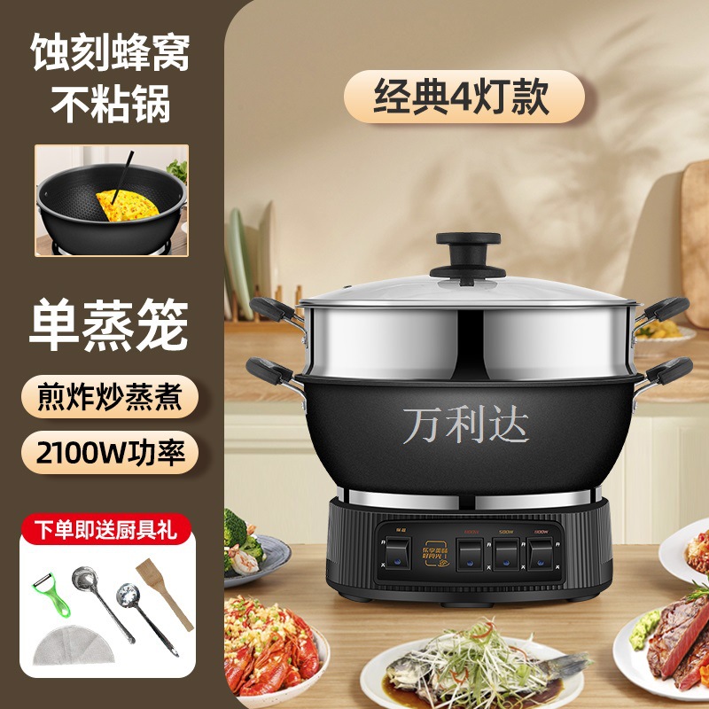 Оптовая продажа, высококачественный чугунный электрический вок, многофункциональный электрический вок и пароварка, универсальная кастрюля, бытовая электрическая кастрюля, аренда дома, универсальная кастрюля