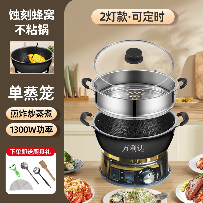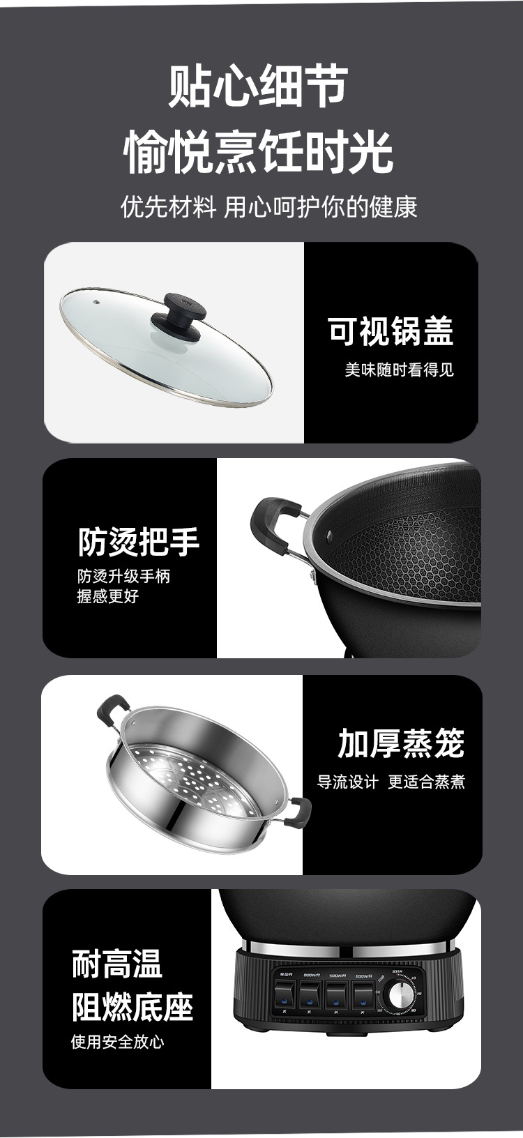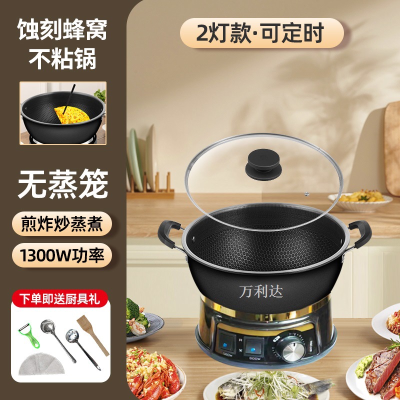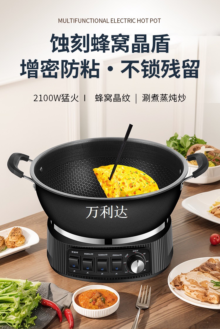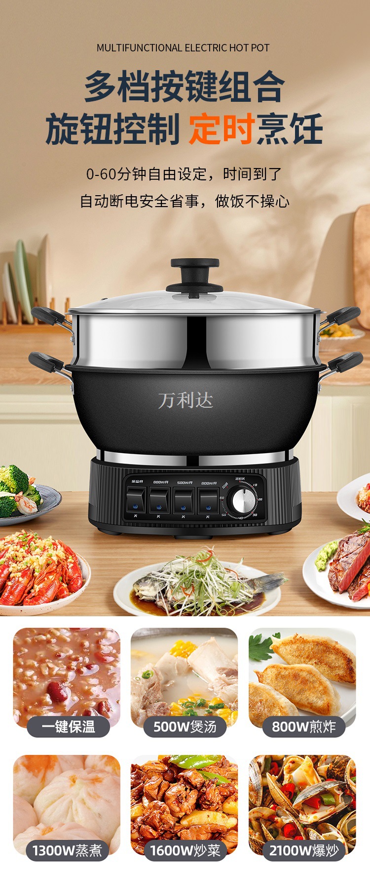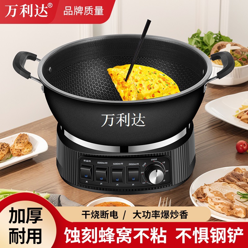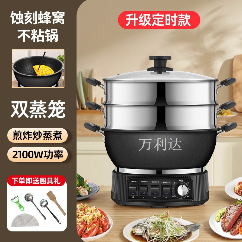 Оптовая продажа, высококачественный чугунный электрический вок, многофункциональный электрический вок и пароварка, универсальная кастрюля, бытовая электрическая кастрюля, аренда дома, универсальная кастрюля