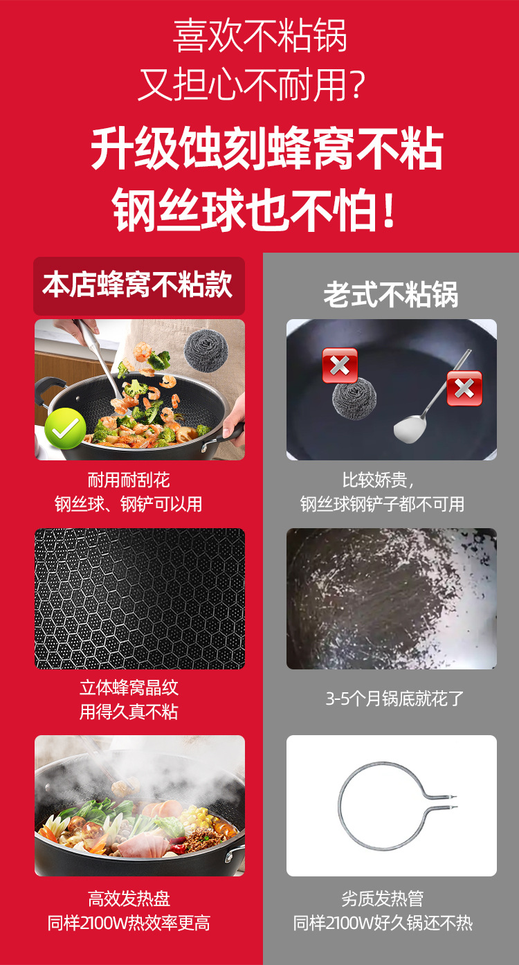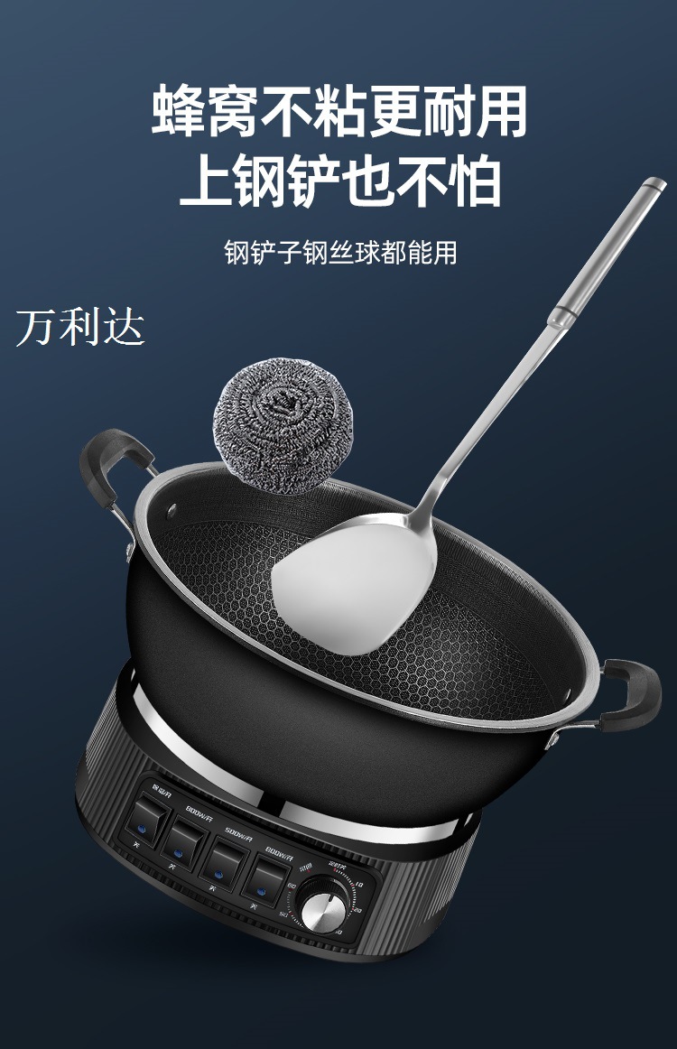 Утолщенный электрический вок с антипригарным покрытием в виде сот.