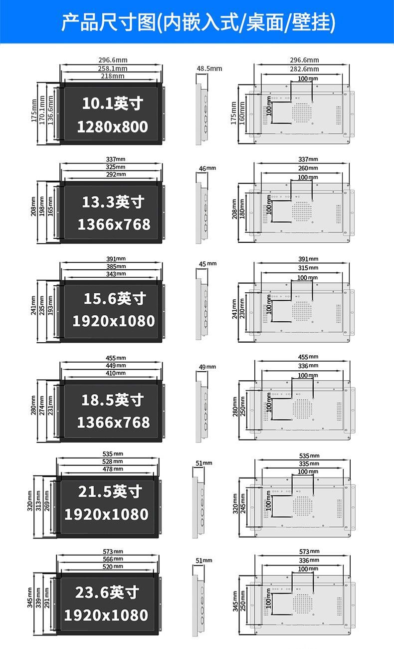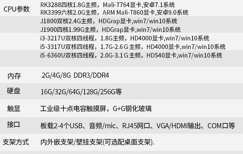 10.4inch Внешний/настенный-J1800 двухъядерный/4G/64G; 10.4inch Внешний/настенный-J1900 четырехъядерный/4G/128G; 10.4inch Внешний встроенный/настенный-i3-3217U/4G/128G; 10.4inch Внешний встроенный/настенный-i5-3317U/4G/128G; 10.4inch Внешний встроенный/настенный-i5-6360U/8G/256G; 10.4inch Внешний/настенный Android RK3288 четырехъядерный/2G/16G; 10.4inch Внешний/настенный Android RK3399 шестиядерный/4G/32G; 12.1inch Внешний/настенный-J1800 двухъядерный/4G/64G; 12.1inch Внешний/настенный-J1900 четырехъядерный/4G/128G; 12.1inch Внешний встроенный/настенный-i3-3217U/4G/128G; 12.1inch Внешний встроенный/настенный-i5-3317U/4G/128G; 12.1inch Внешний встроенный/настенный-i5-6360U/8G/256G; 12.1inch Внешний/настенный Android RK3288 четырехъядерный/2G/16G; 12.1inch Внешний/настенный Android RK3399 шестиядерный/4G/32G; 15inch Внешний/настенный-J1800 двухъядерный/4G/64G; 15inch Внешний/настенный-J1900 четырехъядерный/4G/128G; 15inch Внешний встроенный/настенный-i3-3217U/4G/128G; 15inch Внешний встроенный/настенный-i5-3317U/4G/128G; 15inch Внешний встроенный/настенный-i5-6360U/8G/256G; 15inch Внешний/настенный Android RK3288 четырехъядерный/2G/16G; 15inch Внешний/настенный Android RK3399 шестиядерный/4G/32G; 17inch Внешний/настенный-J1800 двухъядерный/4G/64G; 17inch Внешний/настенный-J1900 четырехъядерный/4G/128G; 17inch Внешний встроенный/настенный-i3-3217U/4G/128G; 17inch Внешний встроенный/настенный-i5-3317U/4G/128G; 17inch Внешний встроенный/настенный-i5-6360U/8G/256G; 17inch Внешний/настенный Android RK3288 четырехъядерный/2G/16G; 17inch Внешний/настенный Android RK3399 шестиядерный/4G/32G; 19inch Внешний/настенный-J1800 двухъядерный/4G/64G; 19inch Внешний/настенный-J1900 четырехъядерный/4G/128G; 19inch Внешний встроенный/настенный-i3-3217U/4G/128G; 19inch Внешний встроенный/настенный-i5-3317U/4G/128G; 19inch Внешний встроенный/настенный-i5-6360U/8G/256G; 19inch Внешний/настенный Android RK3288 четырехъядерный/2G/16G; 19inch Внешний/настенный Android RK3399 шестиядерный/4G/32G; 10.1inch Встраиваемый/настенный-J1800 двухъядерный/4G/64G; 10.1inch Встраиваемый/настенный четырехъядерный процессор J1900/4G/128G; 10.1inch Встраиваемый/настенный-i3-3217U/4G/128G; 10.1inch Встраиваемый/настенный-i5-3317U/4G/128G; 10.1inch Встраиваемый/настенный-i5-6360U/8G/256G; 10.1inch Встраиваемый/настенный Android RK3288 четырехъядерный/2G/16G; 10.1inch Встраиваемый/настенный Android RK3399 шестиядерный/4G/32G; 13.3inch Встраиваемый/настенный-J1800 двухъядерный/4G/64G; 13.3inch Встраиваемый/настенный четырехъядерный процессор J1900/4G/128G; 13.3inch Встраиваемый/настенный-i3-3217U/4G/128G; 13.3inch Встраиваемый/настенный-i5-3317U/4G/128G; 13.3inch Встраиваемый/настенный-i5-6360U/8G/256G; 13.3inch Встраиваемый/настенный Android RK3288 четырехъядерный/2G/16G; 13.3inch Встраиваемый/настенный Android RK3399 шестиядерный/4G/32G; 15.6inch Встраиваемый/настенный-J1800 двухъядерный/4G/64G; 15.6inch Встраиваемый/настенный четырехъядерный процессор J1900/4G/128G; 15.6inch Встраиваемый/настенный-i3-3217U/4G/128G; 15.6inch Встраиваемый/настенный-i5-3317U/4G/128G; 15.6inch Встраиваемый/настенный-i5-6360U/8G/256G; 15.6inch Встраиваемый/настенный Android RK3288 четырехъядерный/2G/16G; 15.6inch Встраиваемый/настенный Android RK3399 шестиядерный/4G/32G; 18.5inch Встраиваемый/настенный-J1800 двухъядерный/4G/64G; 18.5inch Встраиваемый/настенный четырехъядерный процессор J1900/4G/128G; 18.5inch Встраиваемый/настенный-i3-3217U/4G/128G; 18.5inch Встраиваемый/настенный-i5-3317U/4G/128G; 18.5inch Встраиваемый/настенный-i5-6360U/8G/256G; 18.5inch Встраиваемый/настенный Android RK3288 четырехъядерный/2G/16G; 18.5inch Встраиваемый/настенный Android RK3399 шестиядерный/4G/32G; 21.5inch Встраиваемый/настенный-J1800 двухъядерный/4G/64G; 21.5inch Встраиваемый/настенный четырехъядерный процессор J1900/4G/128G; 21.5inch Встраиваемый/настенный-i3-3217U/4G/128G; 21.5inch Встраиваемый/настенный-i5-3317U/4G/128G; 21.5inch Встраиваемый/настенный-i5-6360U/8G/256G; 21.5inch Встраиваемый/настенный Android RK3288 ч
