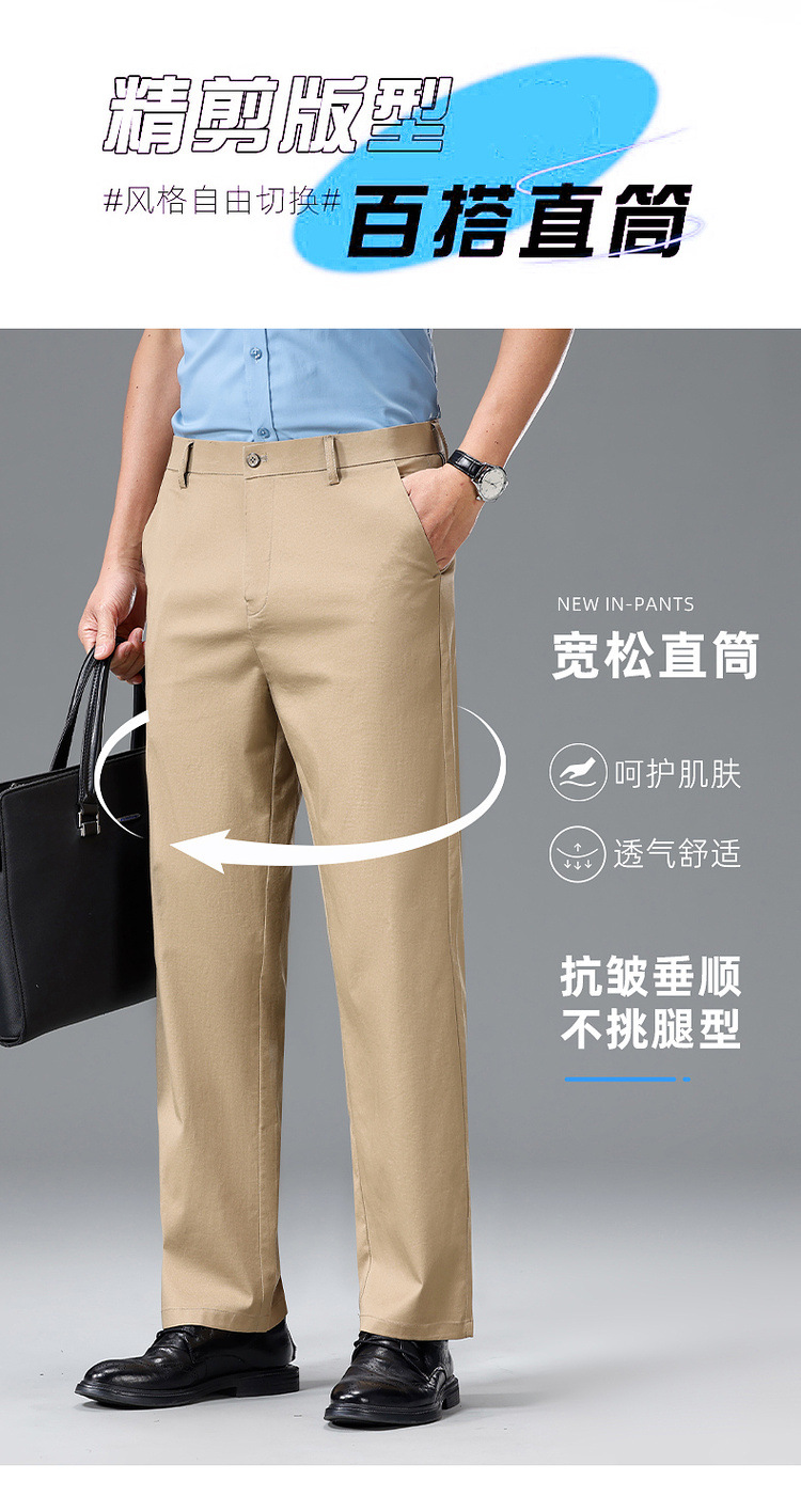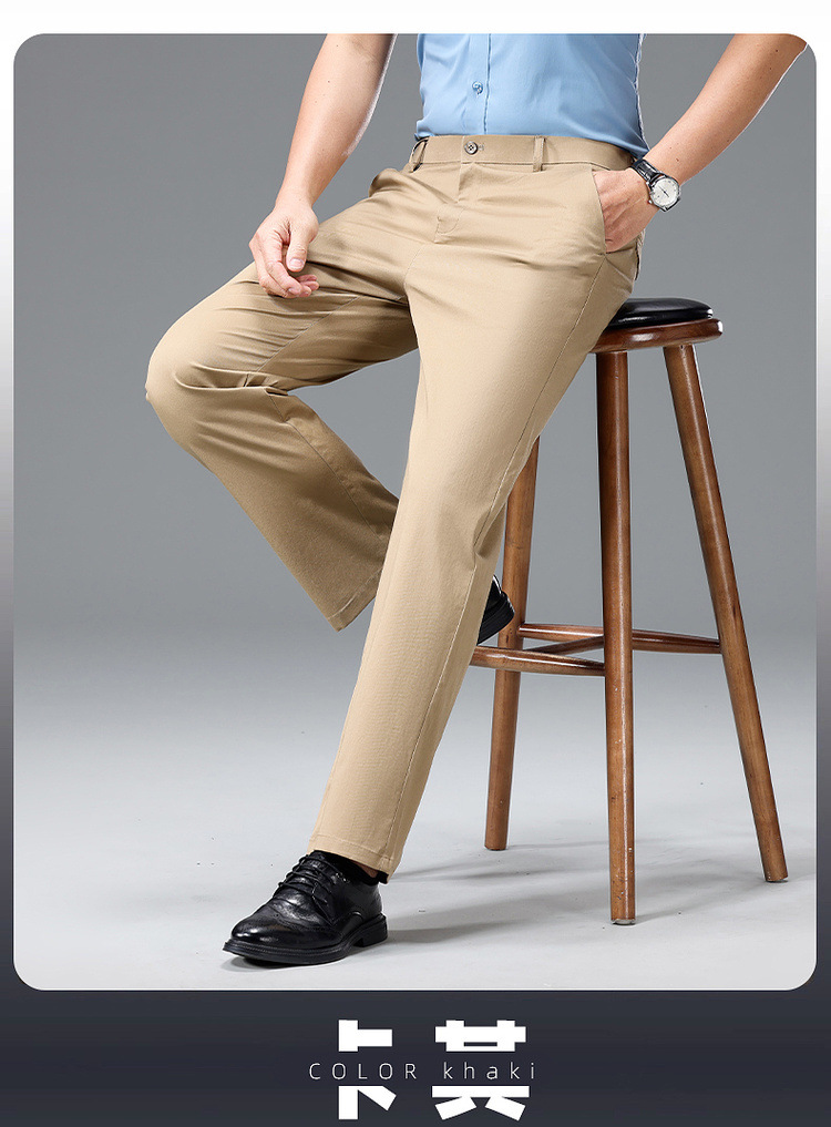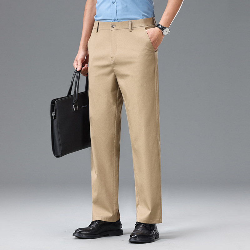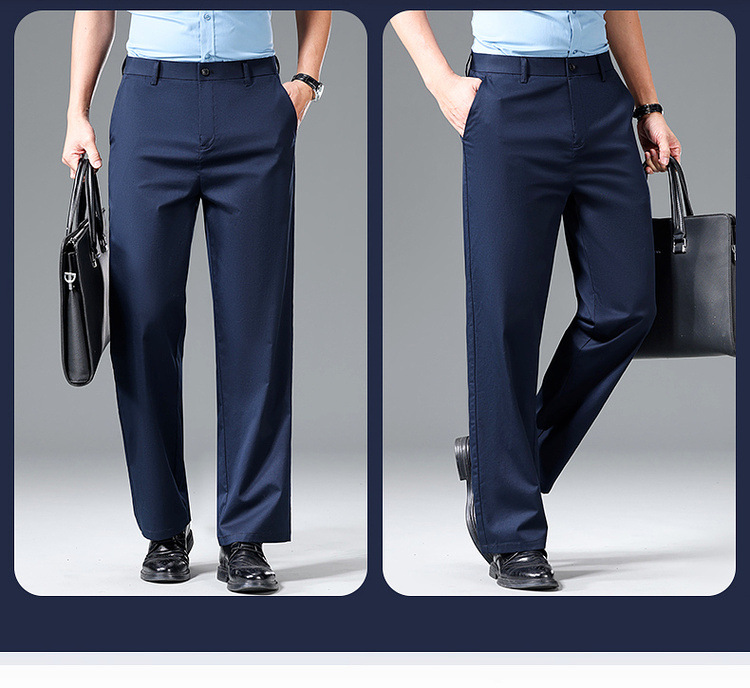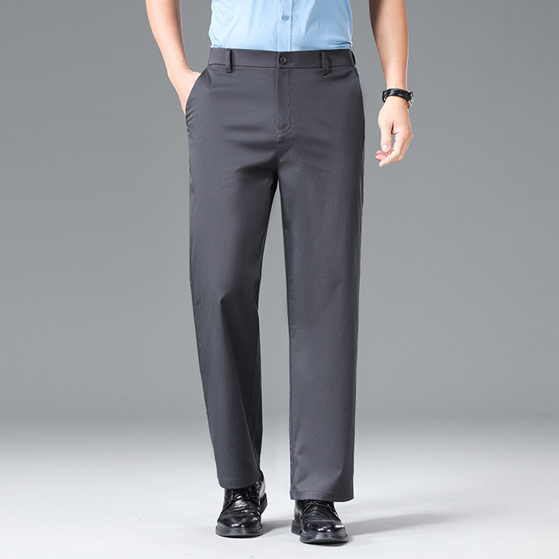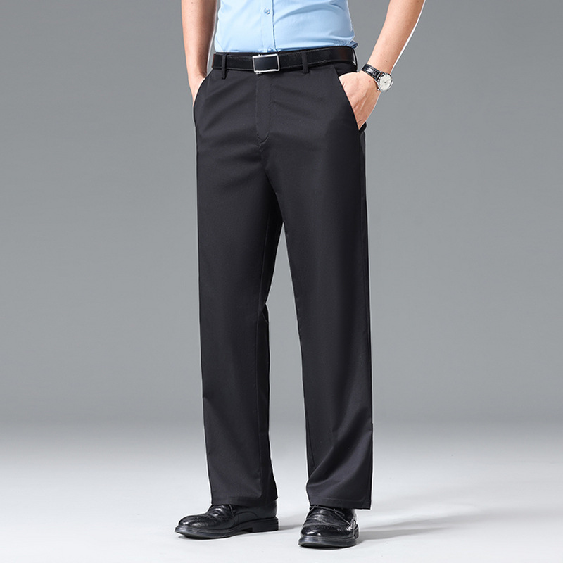 Мужские повседневные брюки для мужчин среднего и пожилого возраста, летние тонкие деловые брюки из ледяного шелка, универсальные свободные прямые повседневные брюки.