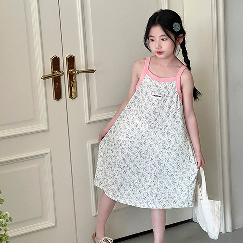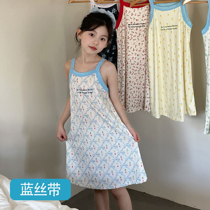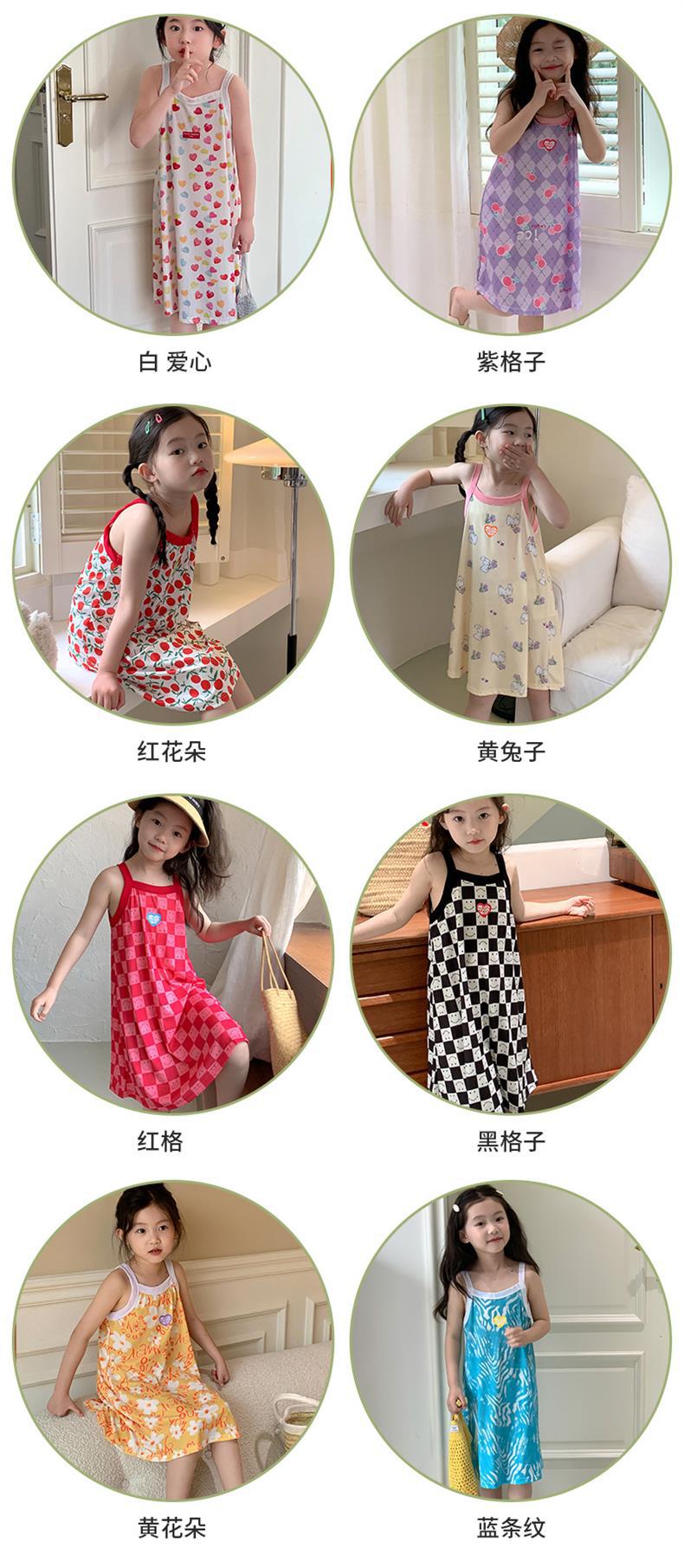 Платье для девочек, новинка 2025 года, летняя детская повседневная юбка на подтяжках, ночная рубашка, женское домашнее платье без рукавов с клетчатым принтом