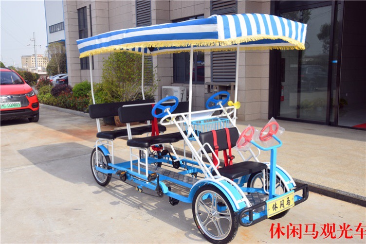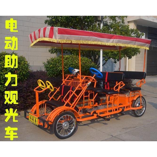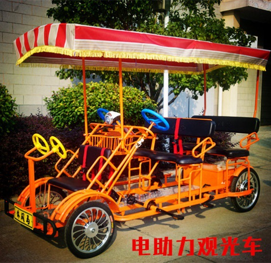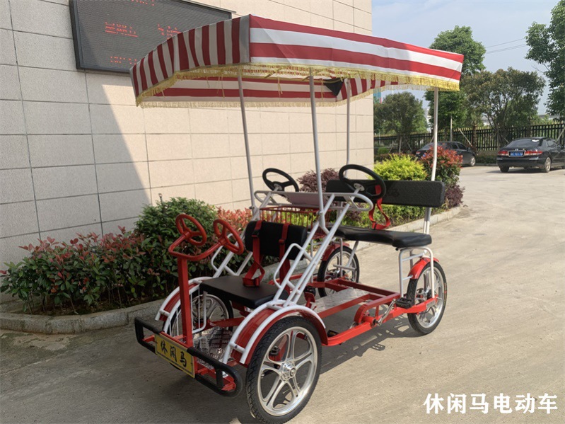 Четырехместный семейный электрический велосипед с педалями для отдыха, четырехколесный электромобиль для экскурсий на два человека в живописных местах