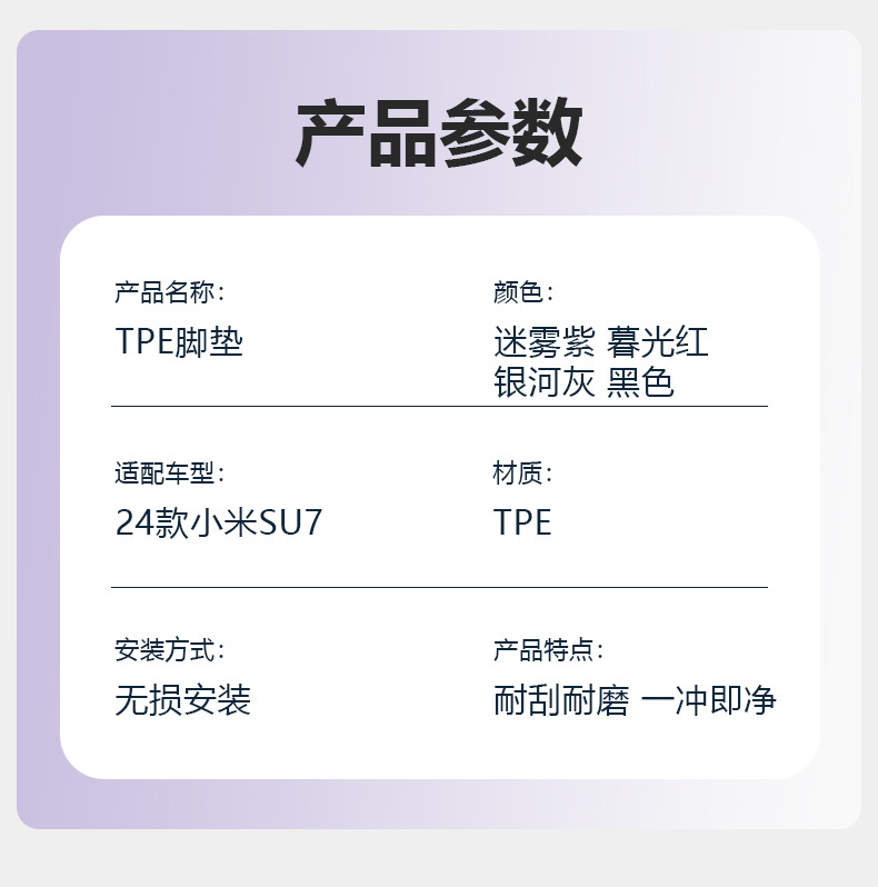 24 модели Xiaomi SU7 [Misty Purple] Подушечки из TPE [SU7/PRO/ MAX]; 24 модели Xiaomi SU7 [Twilight Red] подушечки из TPE [SU7/PRO/ MAX]; 24 модели Xiaomi SU7 [Obsidian Black] Подушечки для ног из TPE [SU7/PRO/ MAX]; 24 модели Xiaomi SU7 [Misty Purple] Двухслойные подушечки для ног из ТПЭ [SU7/PRO/MAX]; 24 модели Xiaomi SU7 [Двухслойные коврики для ног Purple Star Blanket]; 24 модели Xiaomi SU7 [Twilight Red] Двухслойные подушечки из ТПЭ [SU7/PRO/MAX]; 24 модели Xiaomi SU7 [Obsidian Black] Двухслойные подушечки для ног из TPE [SU7/PRO/MAX]; 24 модели Xiaomi SU7 [Misty Purple] Коврик для хвостового ящика [SU7/PRO/MAX]; 24 модели Xiaomi SU7 [Twilight Red] Коврик для багажника [SU7/PRO/MAX]; 24 модели Xiaomi SU7 [Obsidian Black] Коврик для багажника [SU7/PRO/MAX]; 24 модели Xiaomi SU7 [Misty Purple] передняя кабина [SU7/PRO/MAX]; 24 модели Xiaomi SU7 [Twilight Red] передняя кабина [SU7/PRO/MAX]; 24 модели Xiaomi SU7 [Obsidian Black] Передняя кабина [SU7/PRO/MAX]; 24 модели Xiaomi SU7 [Misty Purple] задняя кабина [SU7/PRO]; 24 модели Xiaomi SU7 [Twilight Red] задняя кабина [SU7/PRO]; 24 модели Xiaomi SU7 [Obsidian Black] задняя кабина [SU7/PRO]; 24 модели Xiaomi SU7 [Misty Purple] задняя кабина [MAX]; 24 модели Xiaomi SU7 [Twilight Red] задняя кабина [MAX]; 24 Xiaomi SU7 [Обсидиановый черный] Задняя кабина [MAX]; 24 модели Xiaomi SU7 [Misty Purple] комплект из трех ковриков для багажника [SU7/PRO]; 24 модели Xiaomi SU7 [Twilight Red] комплект из трех ковриков для багажника [SU7/PRO]; 24 модели Xiaomi SU7 [Obsidian Black] Комплект из трех ковриков для багажника [SU7/PRO]; 24 модели Xiaomi SU7 [Misty Purple] комплект из трех ковриков для багажника [MAX]; 24 Xiaomi SU7 [Twilight Red] Набор из трех ковриков для багажника [MAX]; 24 Xiaomi SU7 [Obsidian Black] Набор из трех ковриков для багажника [MAX]; 24 Подушка спинки Xiaomi SU7 [Misty Purple] [SU7/PRO/MAX]; 24 Подушка спинки Xiaomi SU7 [Twilight Red] [SU7/PRO/MAX]; 24 Подушка спинки Xiaomi SU7 [Obsidian Black] [SU7/PRO/MAX]; 24 модели Xiaomi SU7 [Misty Purple] передняя кабина + задняя кабина [SU7/PRO]; 24 модели Xiaomi SU7 [Twilight Red] передняя кабина + задняя кабина [SU7/PRO]; 24 модели Xiaomi SU7 [Obsidian Black] передняя кабина + задняя кабина [SU7/PRO]; 24 модели Xiaomi SU7 [Misty Purple] передняя кабина + задняя кабина [MAX]; 24 Xiaomi SU7 [Сумеречный красный] Передняя кабина + задняя кабина [MAX]; 24 Xiaomi SU7 [Obsidian Black] Передняя кабина + задняя кабина [MAX]; 24 Одеяло Xiaomi SU7 Purple Starry Sky