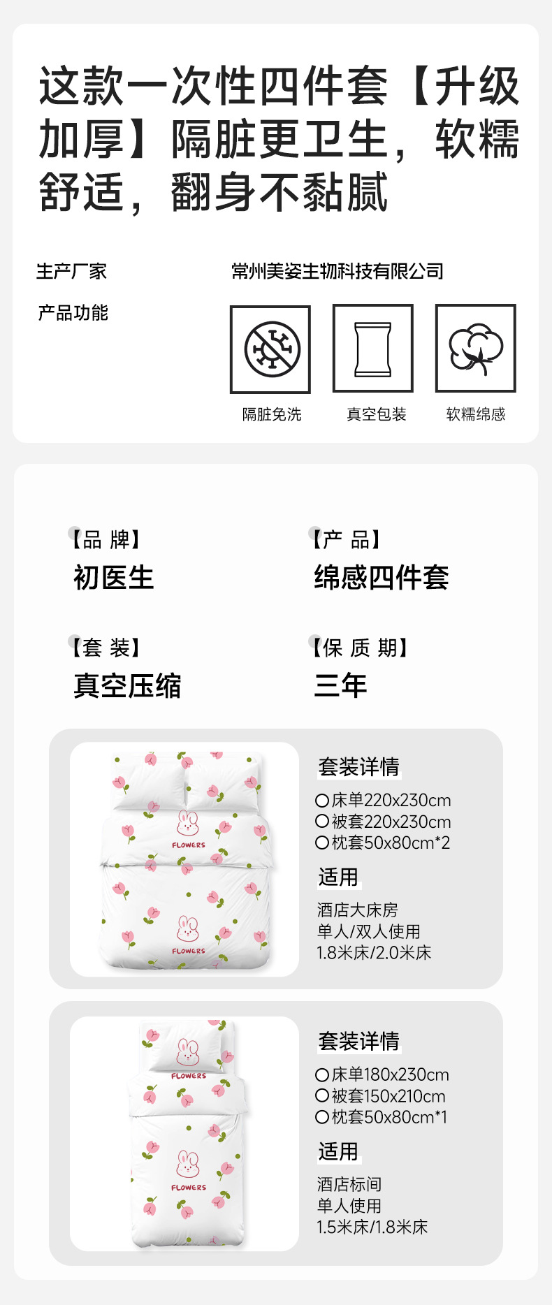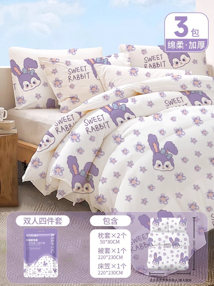 Одноразовый комплект из четырех предметов из чистого хлопка: простыни, пододеяльники, наволочки, утолщенное грязеотталкивающее постельное белье класса А для путешествий в отель.