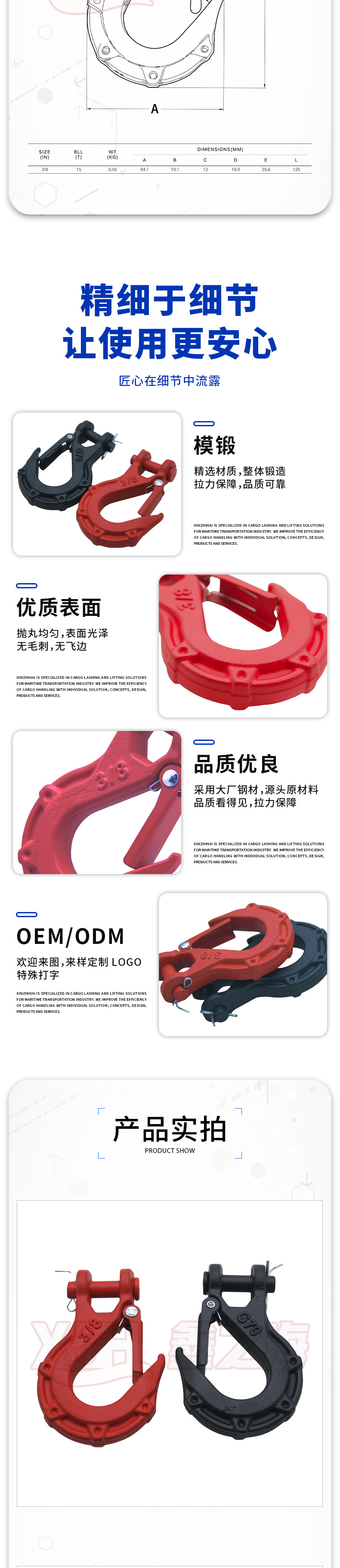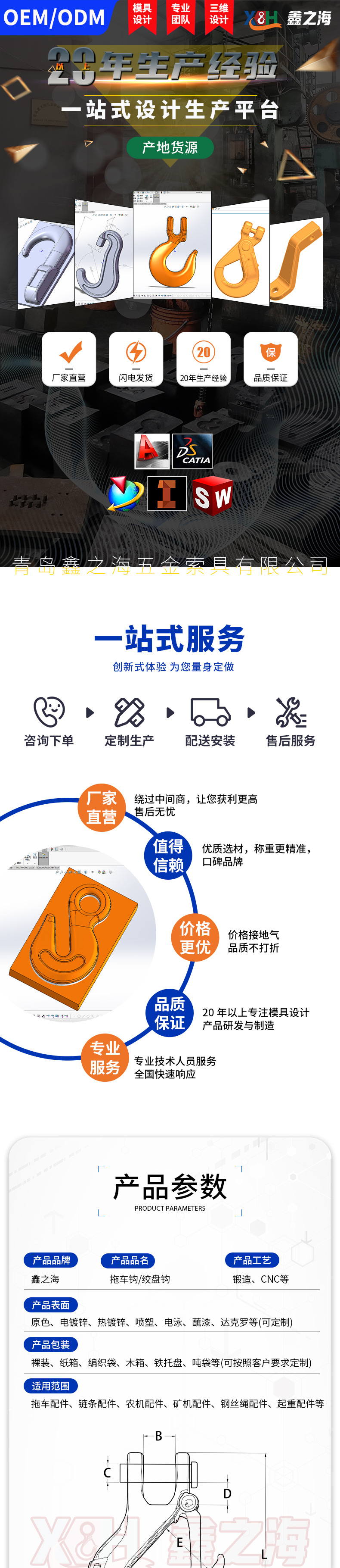 Xinzhihai специализируется на производстве и проектировании лебедочных крюков, буксировочных крюков для прицепов, автомобильных крюков, аксессуаров для внедорожной спасательной техники, чертежей и образцов.