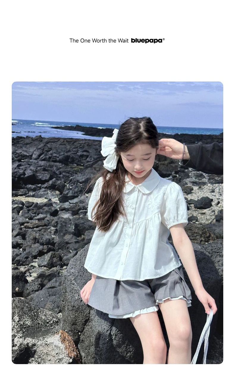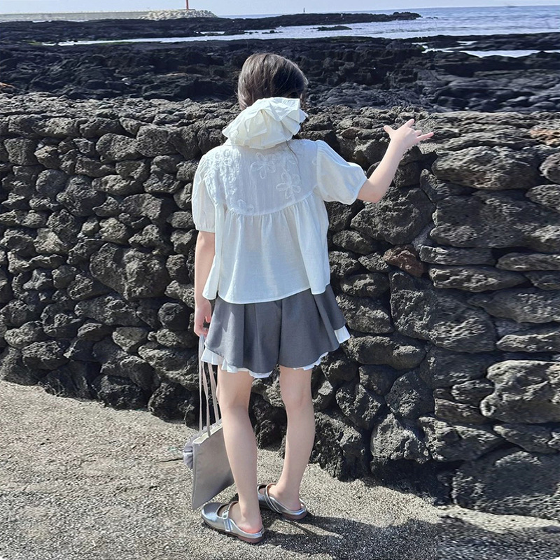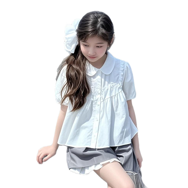Yingpai детская одежда для девочек, рубашка с французской вышивкой, летняя новая стильная детская рубашка с короткими рукавами, модная