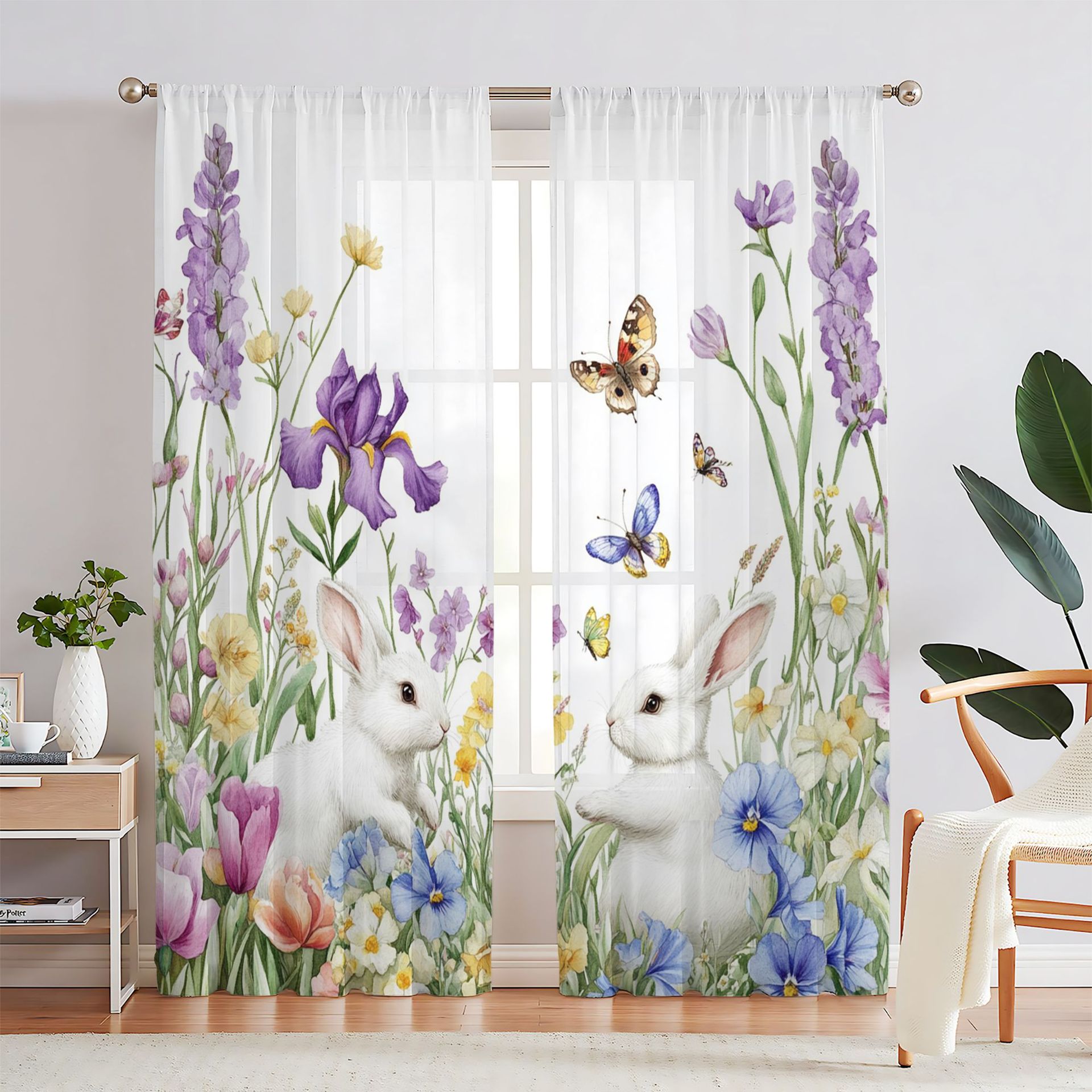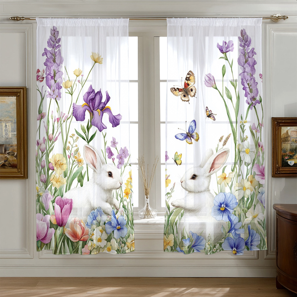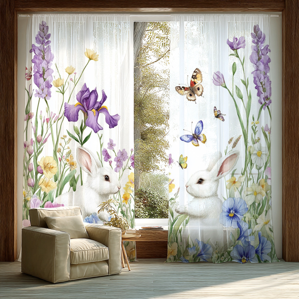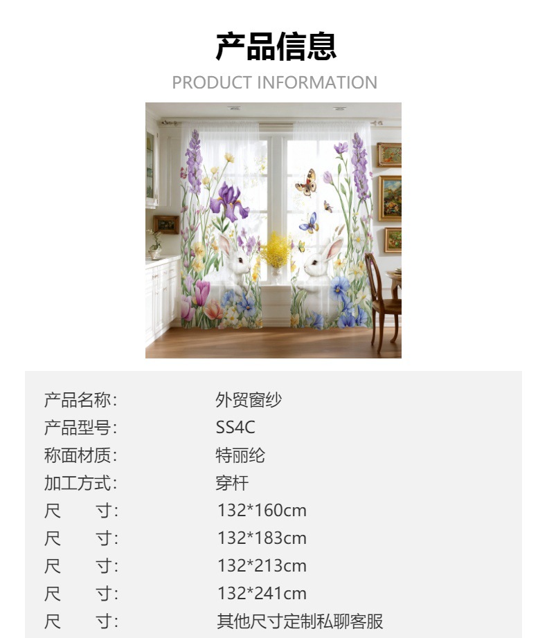 Поддержка прямых трансграничных продаж JIT от производителей, свежая цифровая печать с цветочными и кроличьими мотивами для штор и оконных сеток.