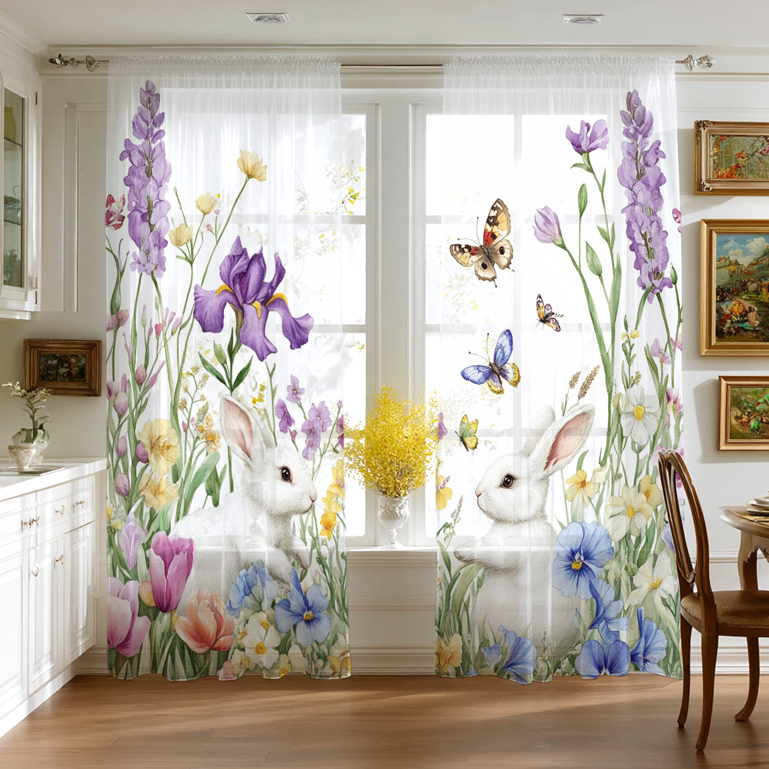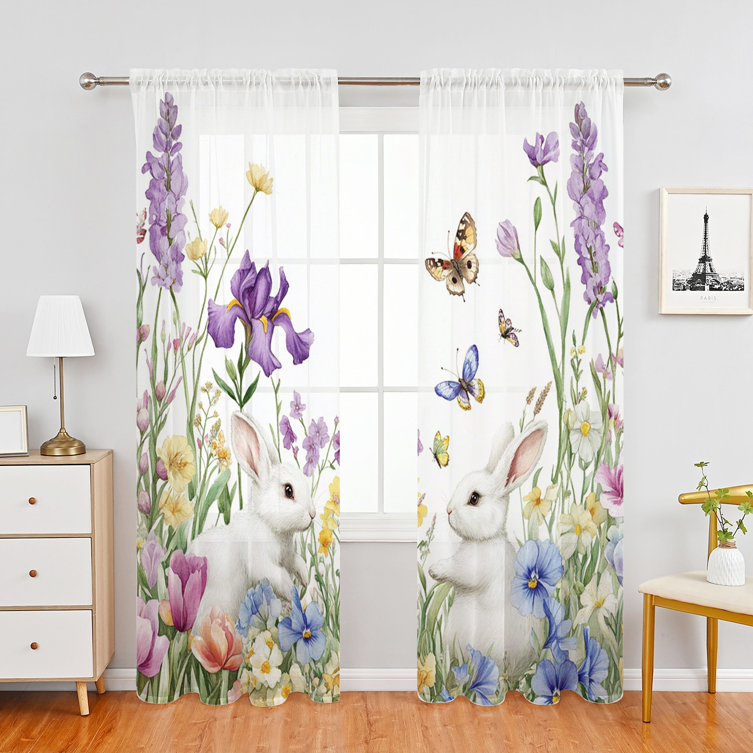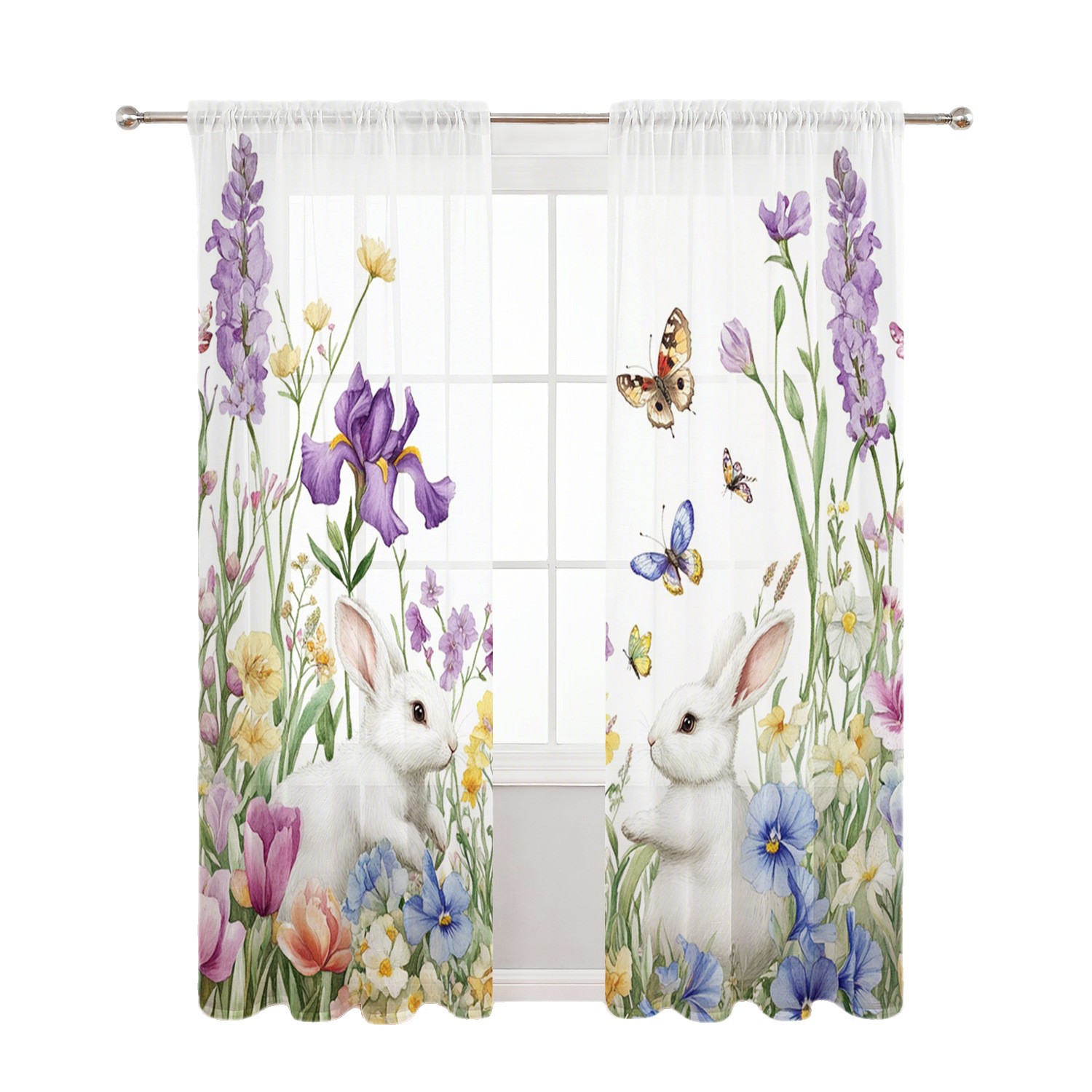 Поддержка прямых трансграничных продаж JIT от производителей, свежая цифровая печать с цветочными и кроличьими мотивами для штор и оконных сеток.