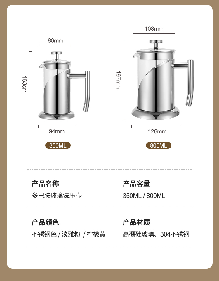 Стеклянный французский пресс из нержавеющей стали, кофейник для ручного заваривания, французский фильтр-пресс для приготовления чая и фильтрации кофе, бытовая техника