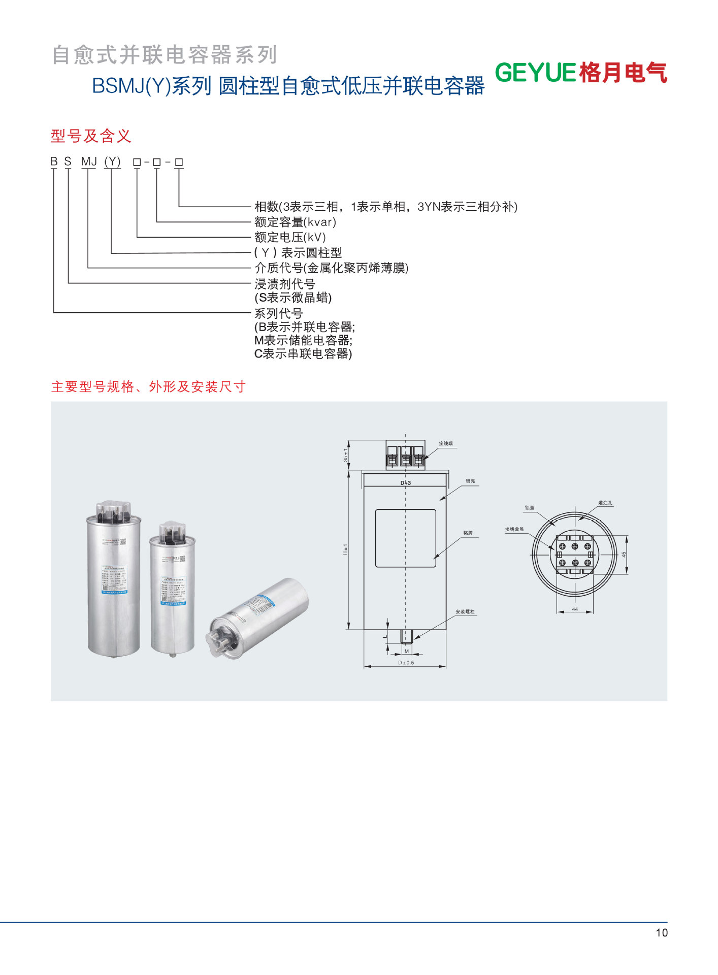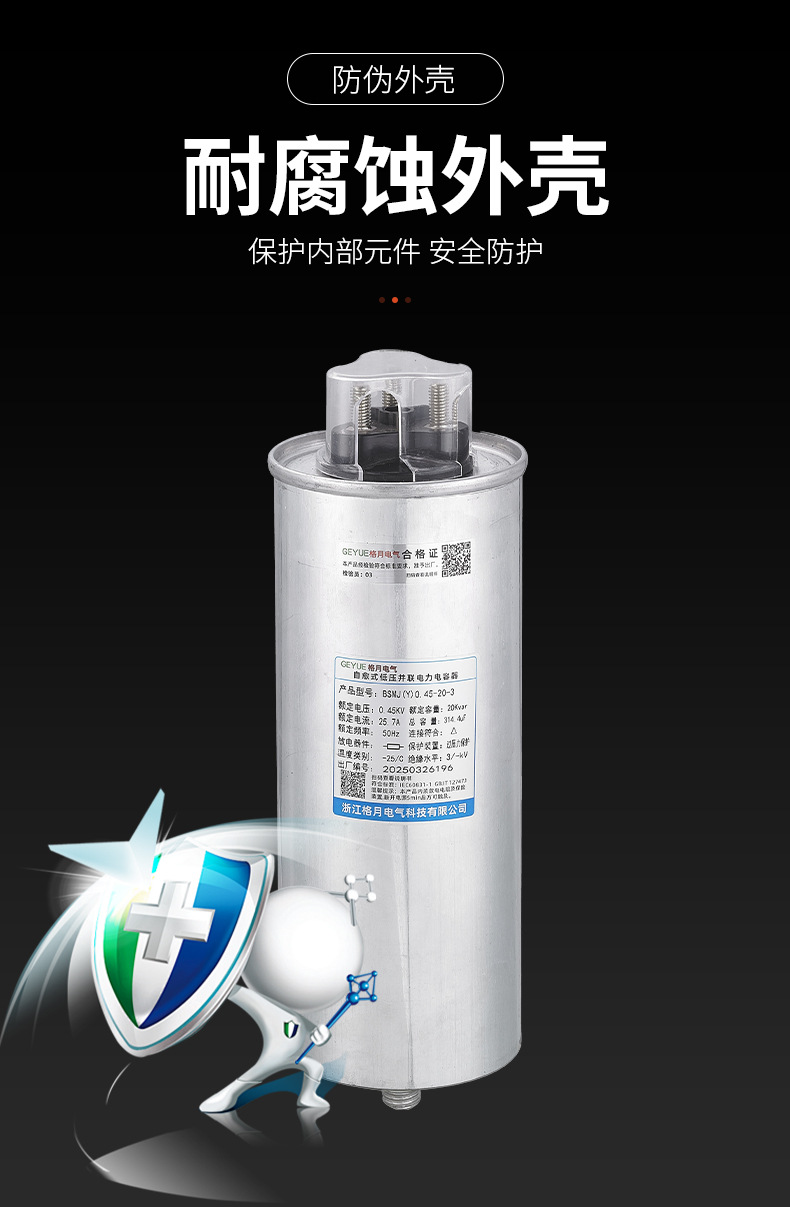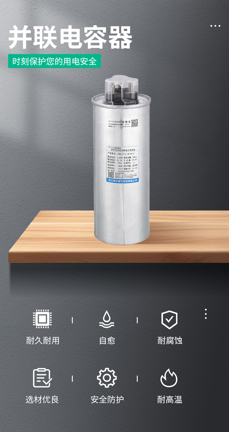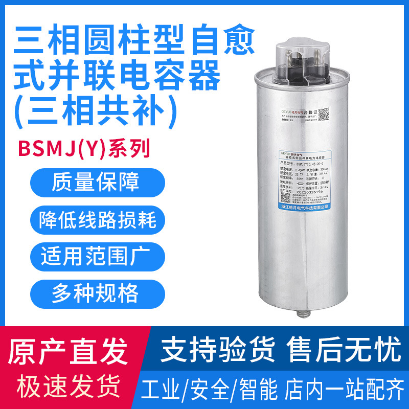 Geyue Электрический трехфазный цилиндрический самовосстанавливающийся параллельный конденсатор Трехфазная общая компенсация серии BSMJ(Y) Оптовая продажа