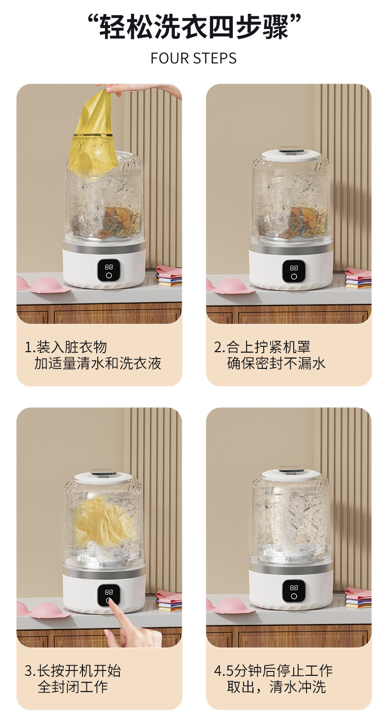 Беспроводная чашка для стирки, портативная стиральная машина для нижнего белья, умная стиральная машина для носков, маленькая мини-машина без установки