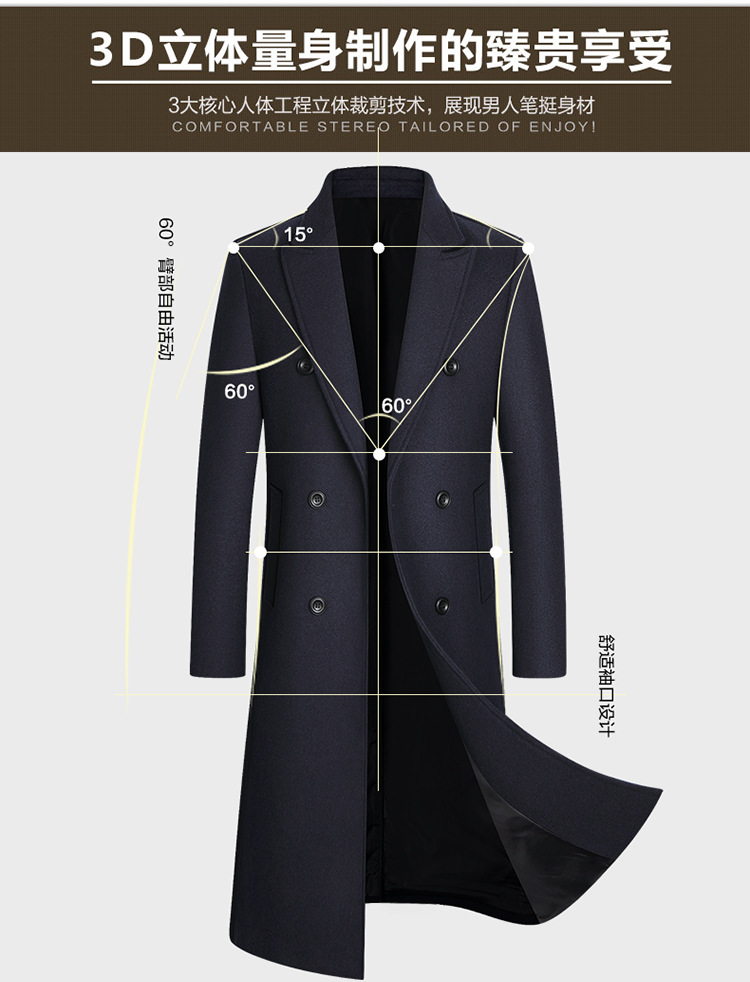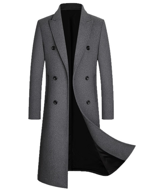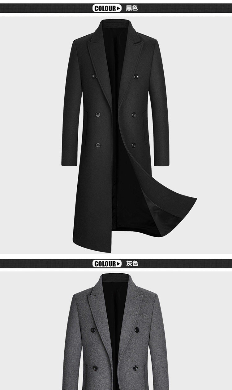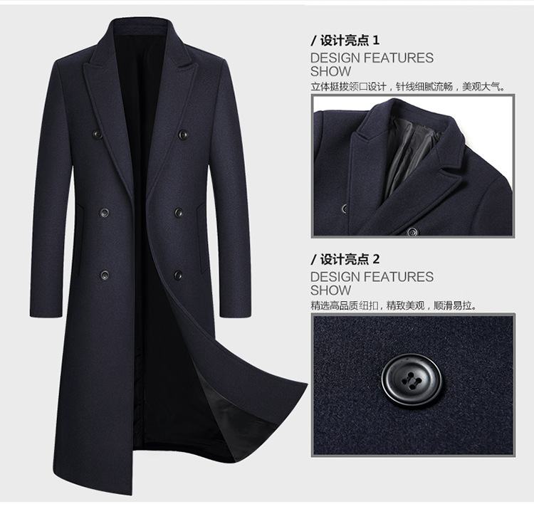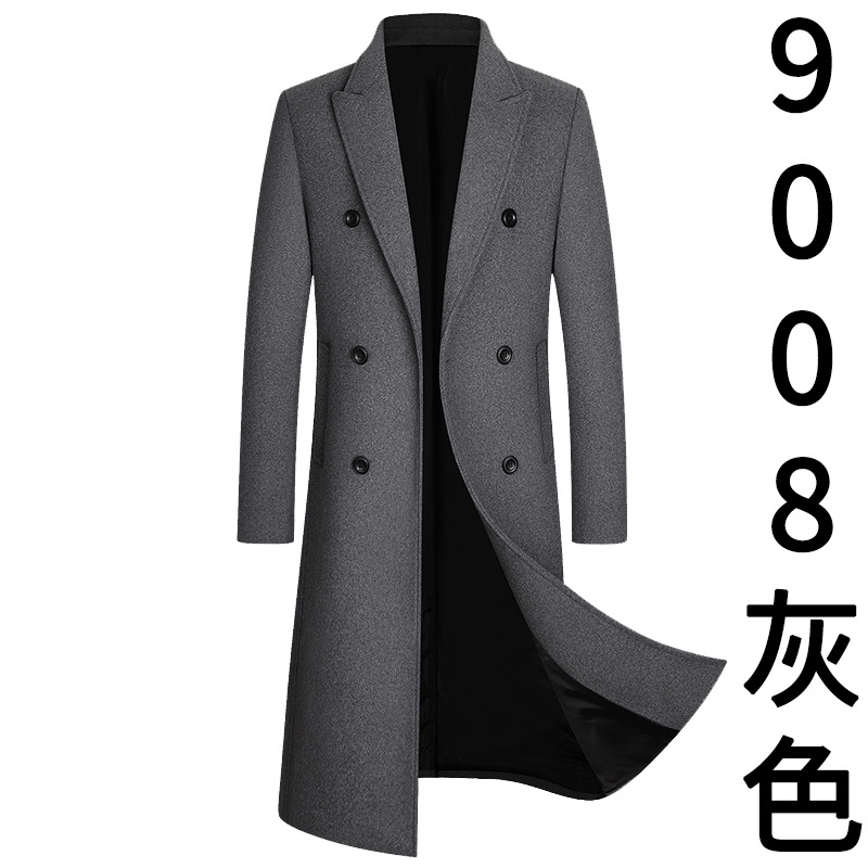 Европейский размер, осенне-зимняя новая двубортная длинная шерстяная верхняя одежда выше колена, мужская шерстяная верхняя одежда, ветровка, верхняя одежда большого размера