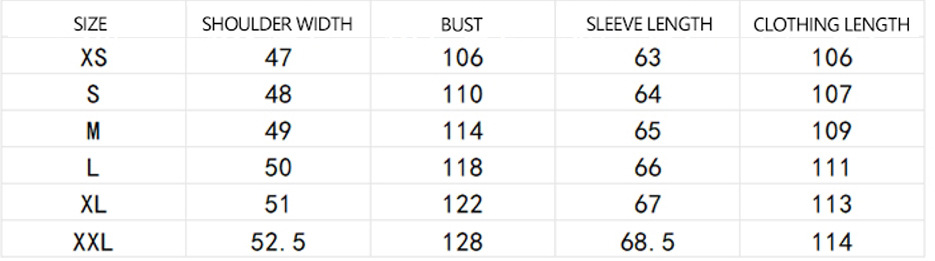 Европейский размер XS (обхват груди 106 см).; Европейский размер S (обхват груди 110 см).; Европейский размер М (обхват груди 114 см).; Европейский размер L (обхват груди 118 см).; Европейский размер XL (обхват груди 122 см).; Европейский размер XXL (обхват груди 128 см).
