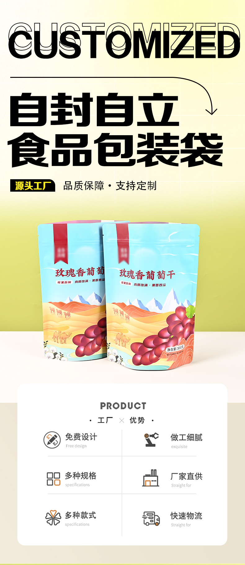 Упаковочный пакет для сухофруктов в банке, пищевая упаковка, зип-пакет, индивидуальный дизайн, печать логотипа, самоподдерживающийся пищевой пакет
