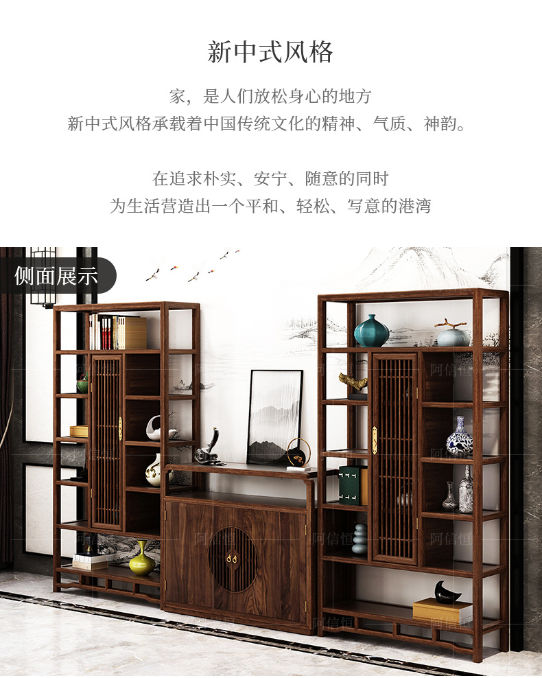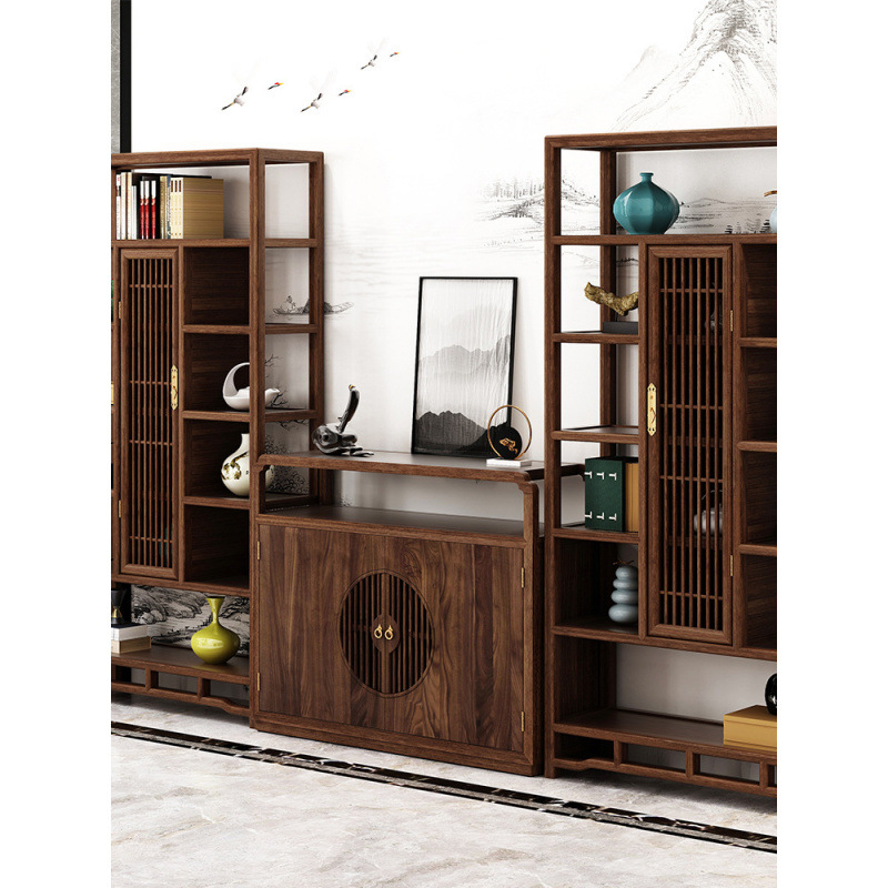 Новый книжный шкаф в китайском стиле, комбинированный чайный шкаф, черный орех, массив древесины, древняя полка, шкаф для хранения, высококачественная мебель
