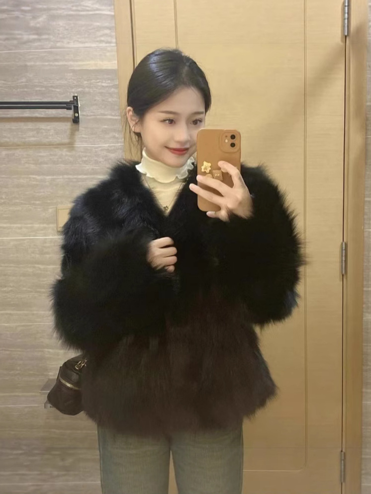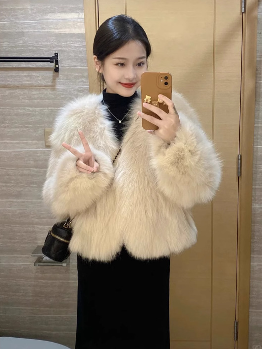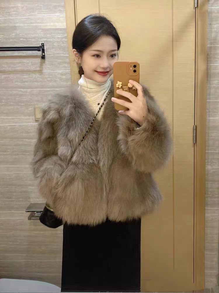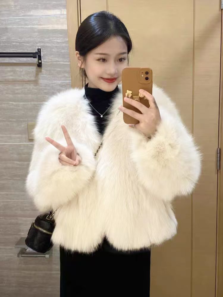 Пушистая верхняя одежда, женская осенне-зимняя модная верхняя одежда из искусственного лисьего меха, экологически чистый короткий универсальный топ с v-образным вырезом, элитный