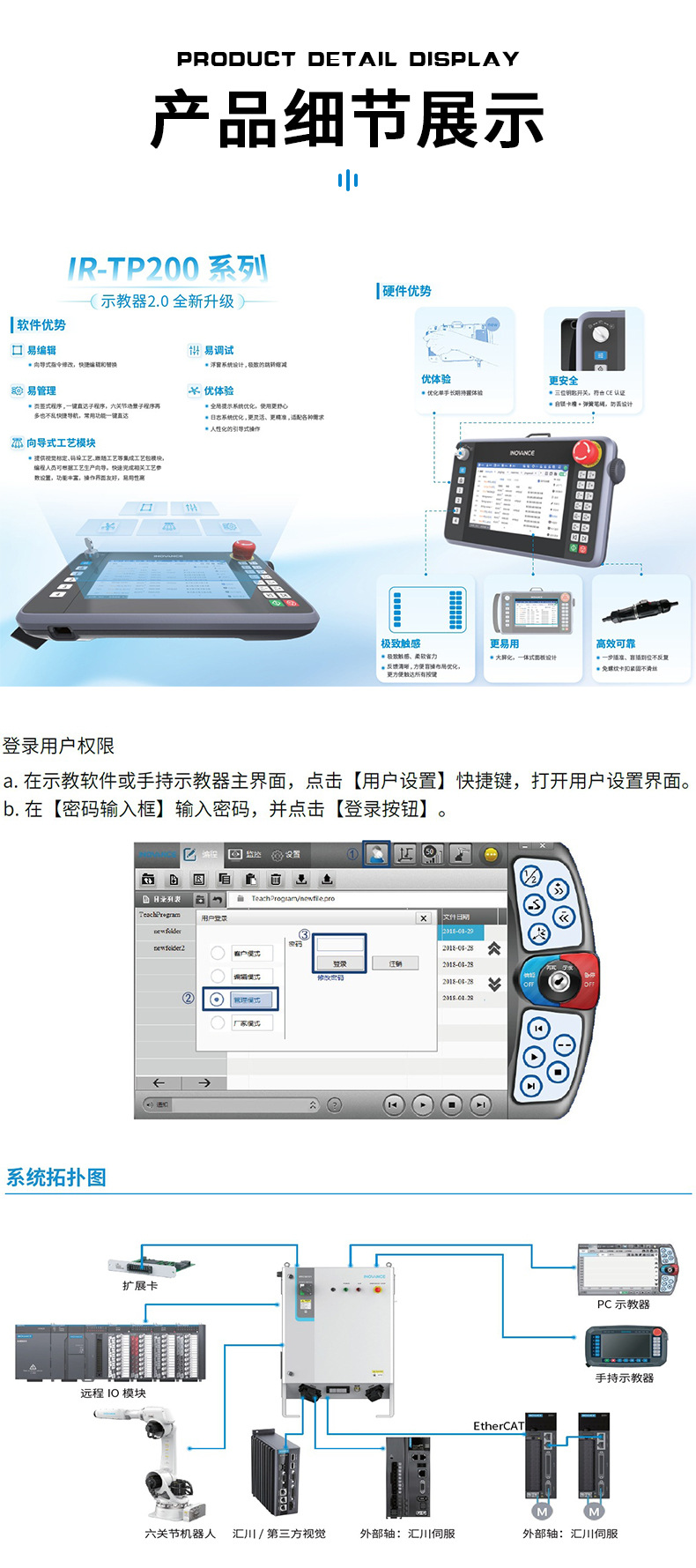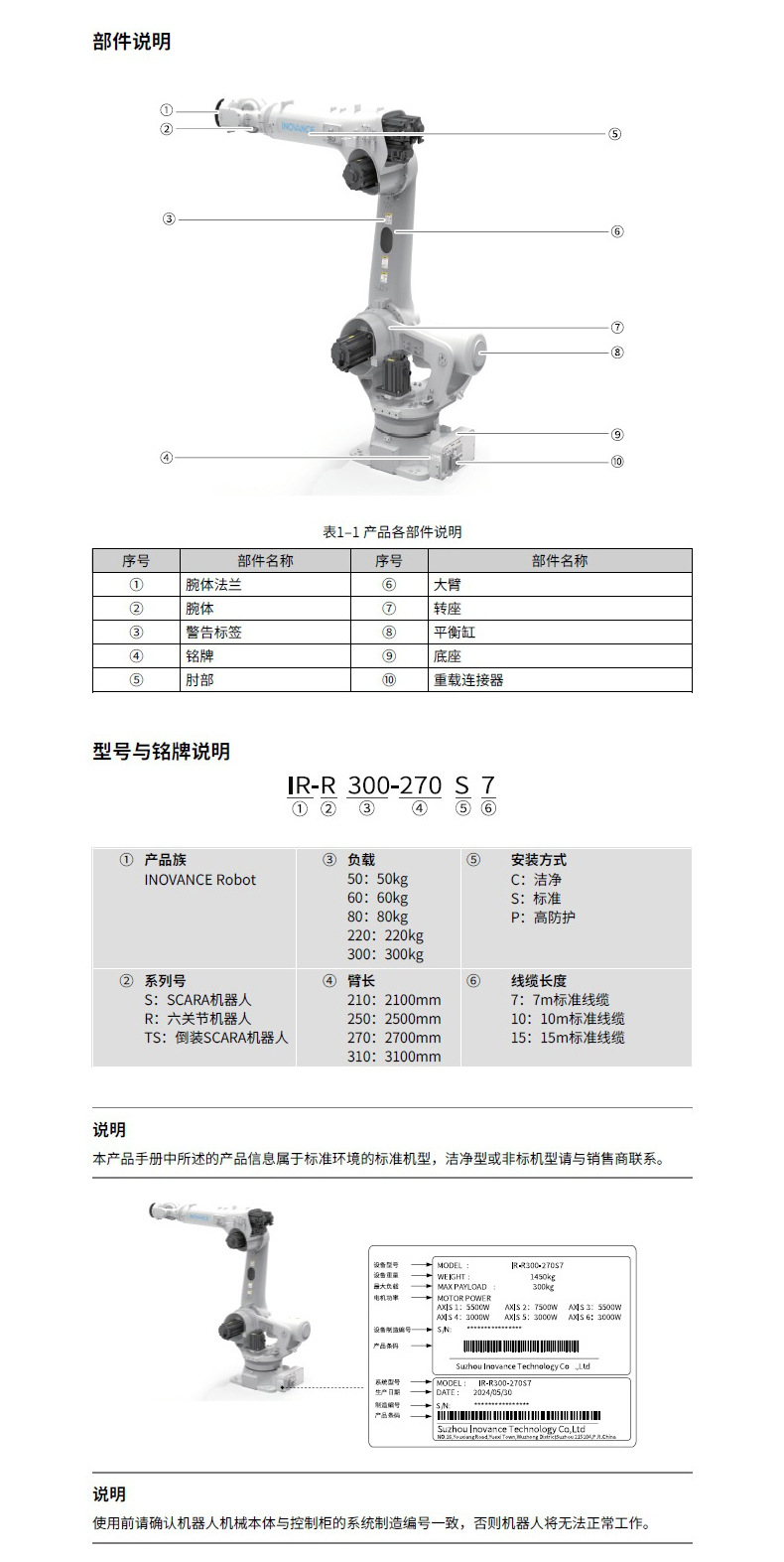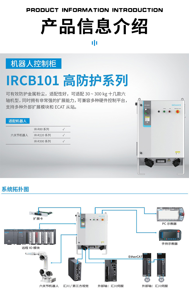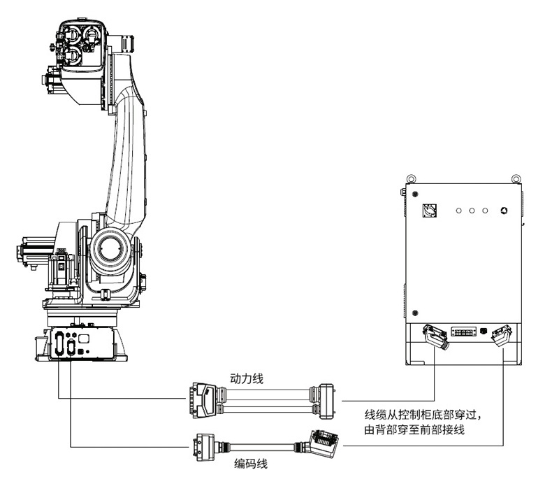 产品构成:机器人本体、控制柜、互联线缆、示教器